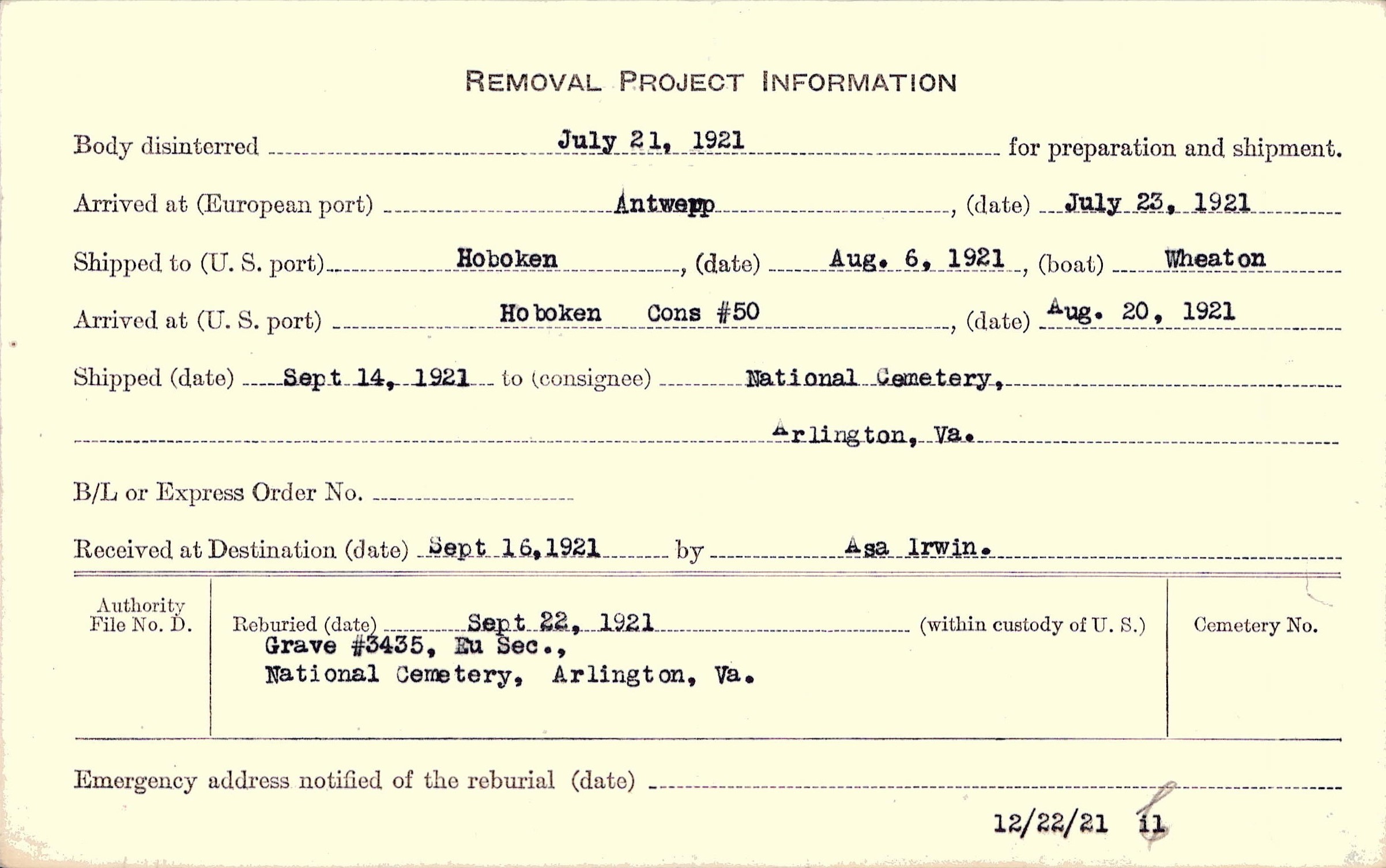 Grave 111, Section 58, Plot 3, Argonne American Cemetery, Romagne-sous-Montfaucon, Meuse