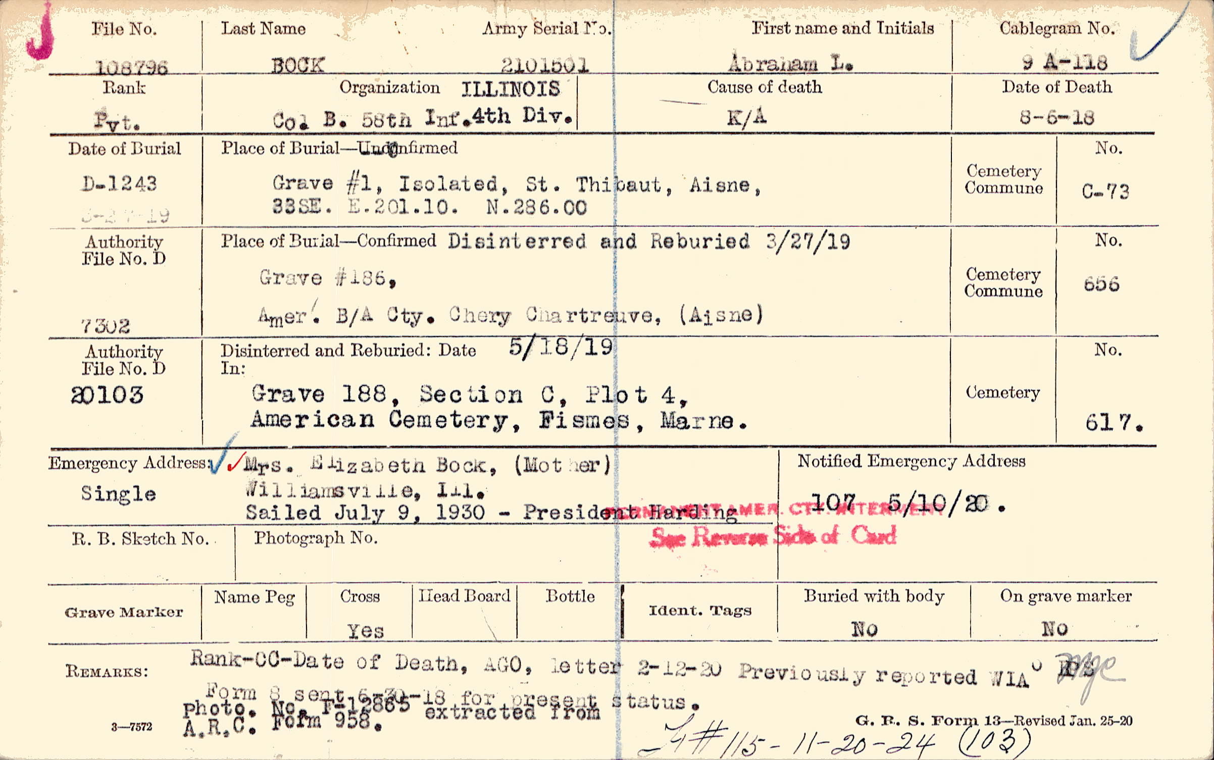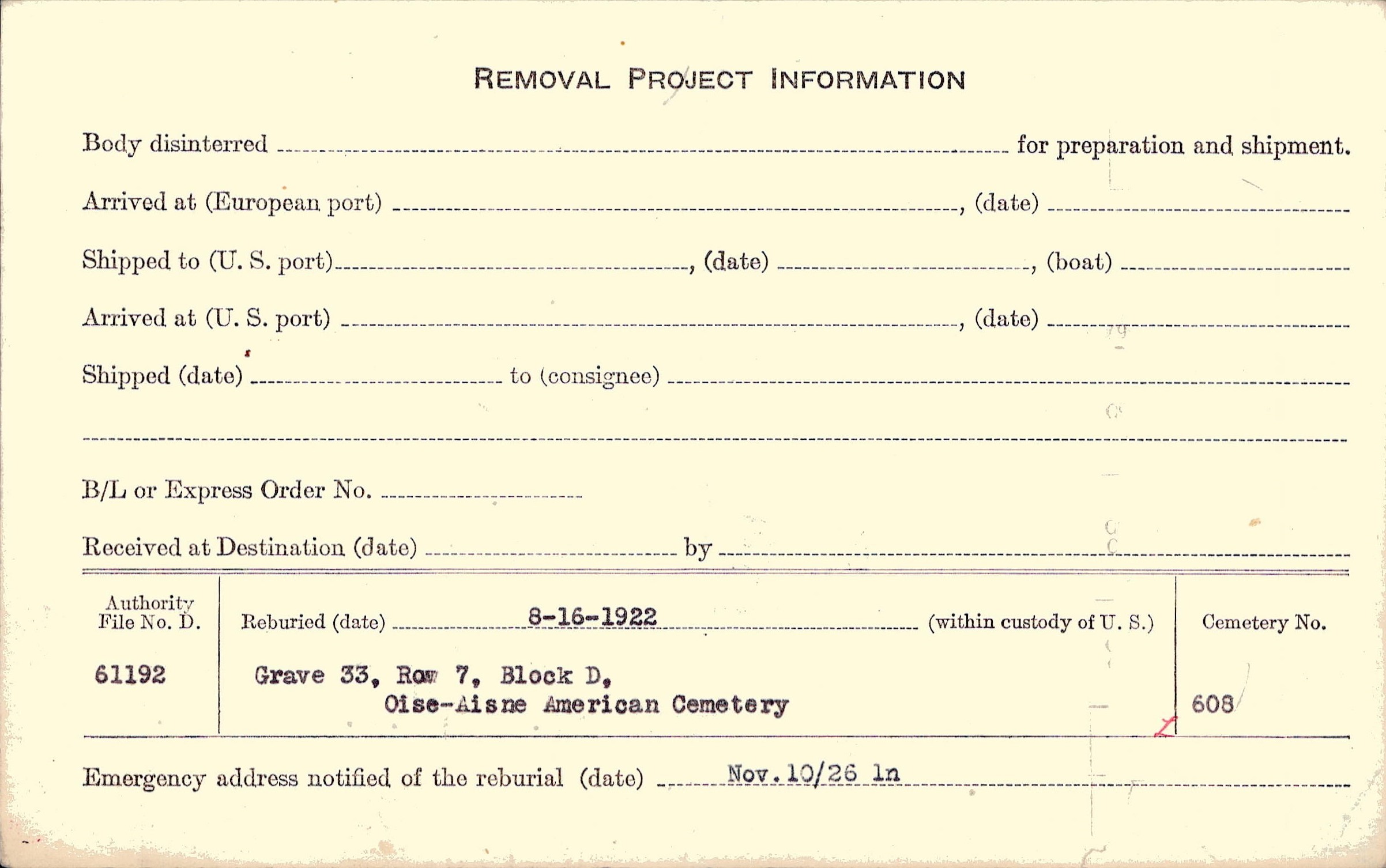 #Disinterred,#Reburied,3/27/19,Grave #186, Amer. B/A Cty., Chery Chartreuve, Aisne