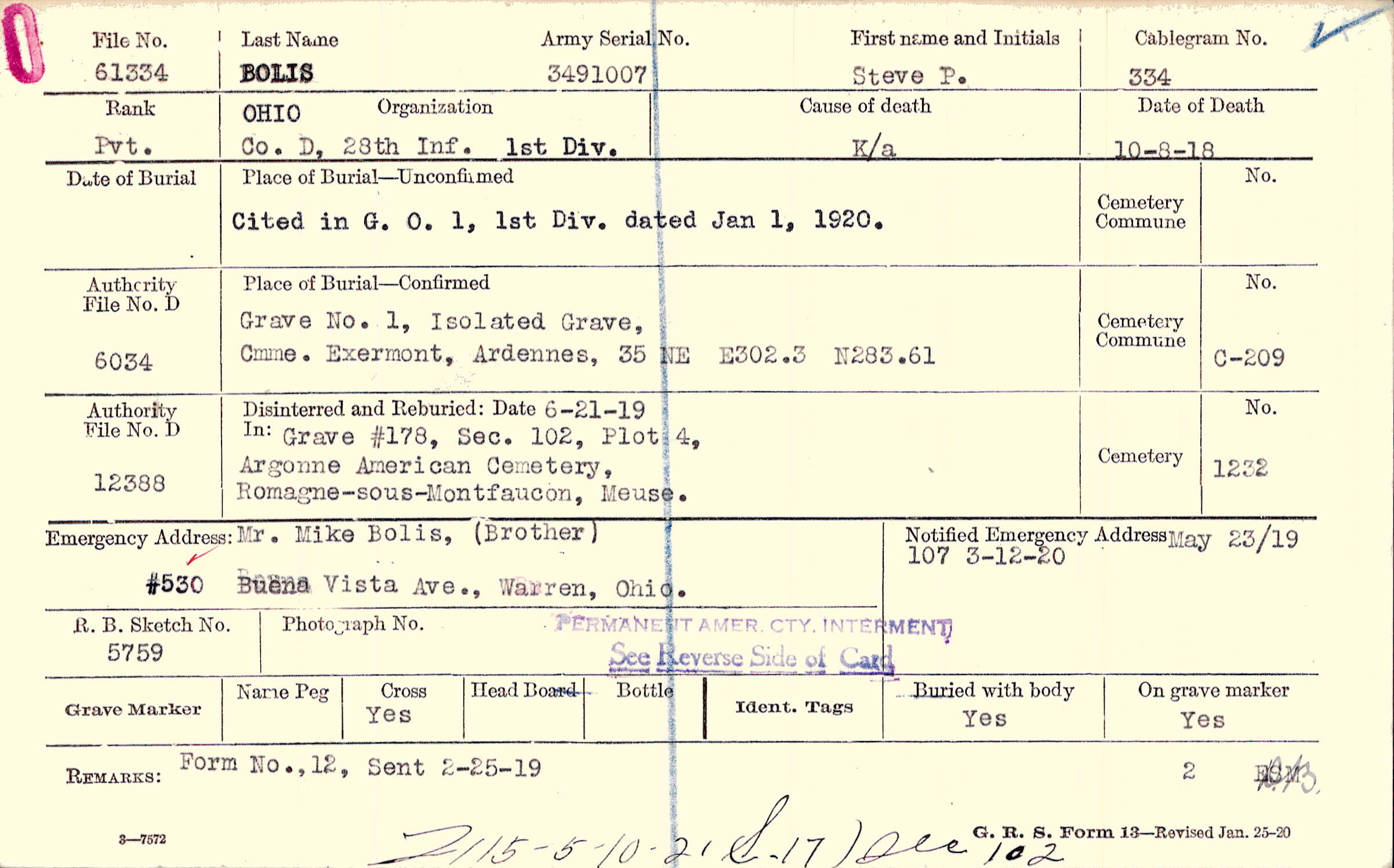 Mr. Mike Bolis, (Brother), #530 Buena Vista Ave., Warren, Ohio.