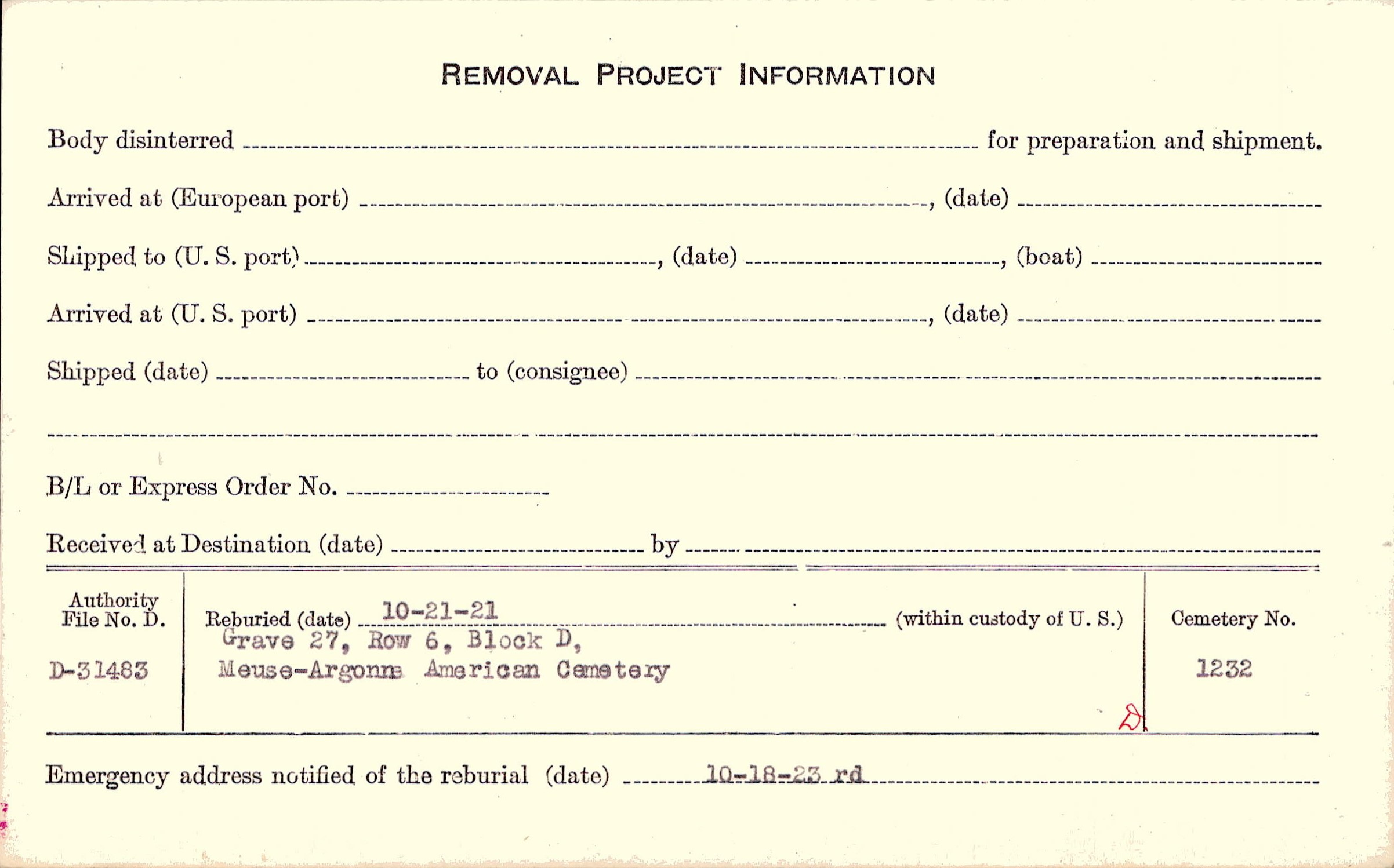 Grave 1, Isolated Grave, Cmme. Exermont, Ardennes, 35 NE