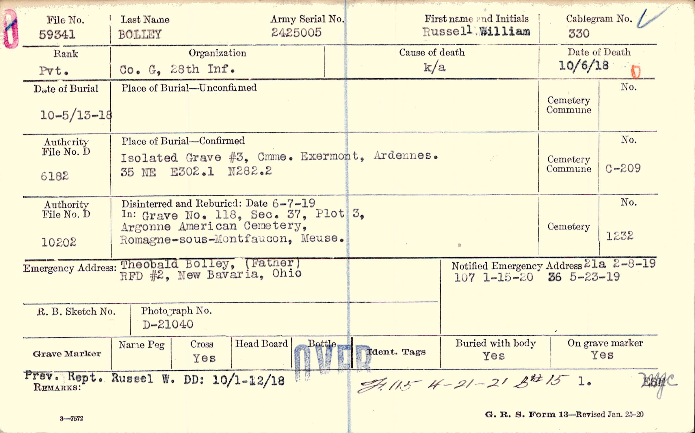 Isolated Grave #3, Cmme. Exermont, Ardennes., 35 NE