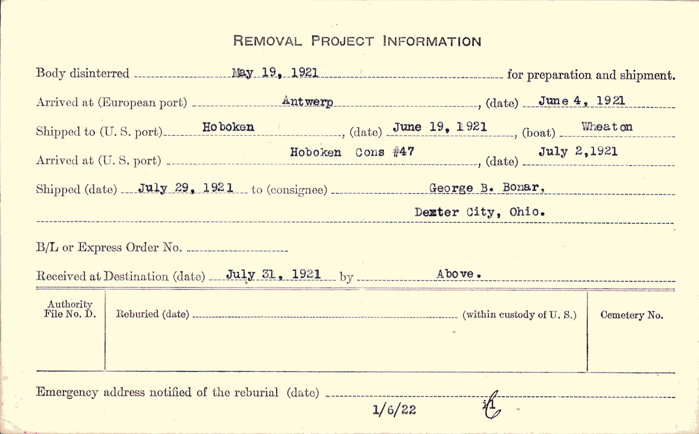 G.B. Bonar, (Father), Harrietsville, Ohio.