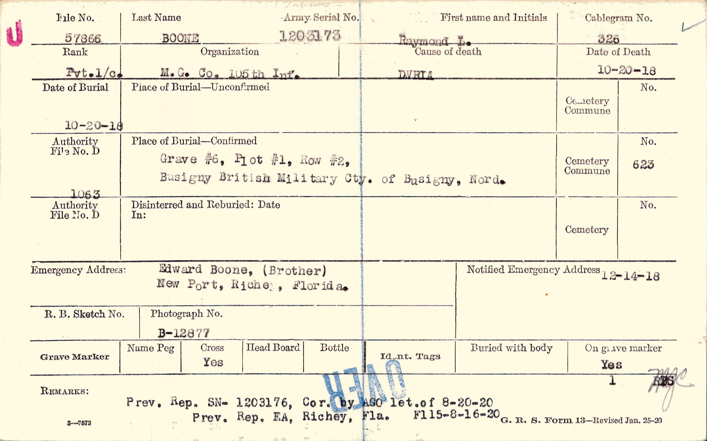 Grave #6, Plot #1, Row #2, Busigny British Military Cty. of Busigny, Nord.