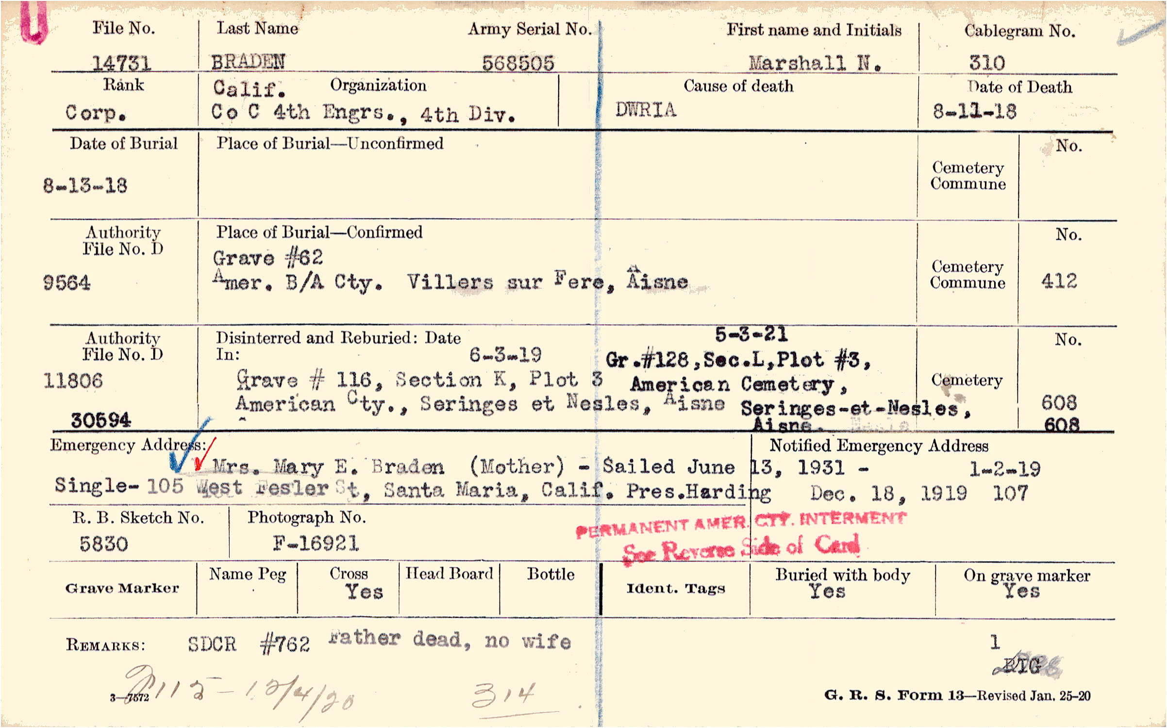 Father dead, no wife, F115 - 12/4/20 314, SDCR #762