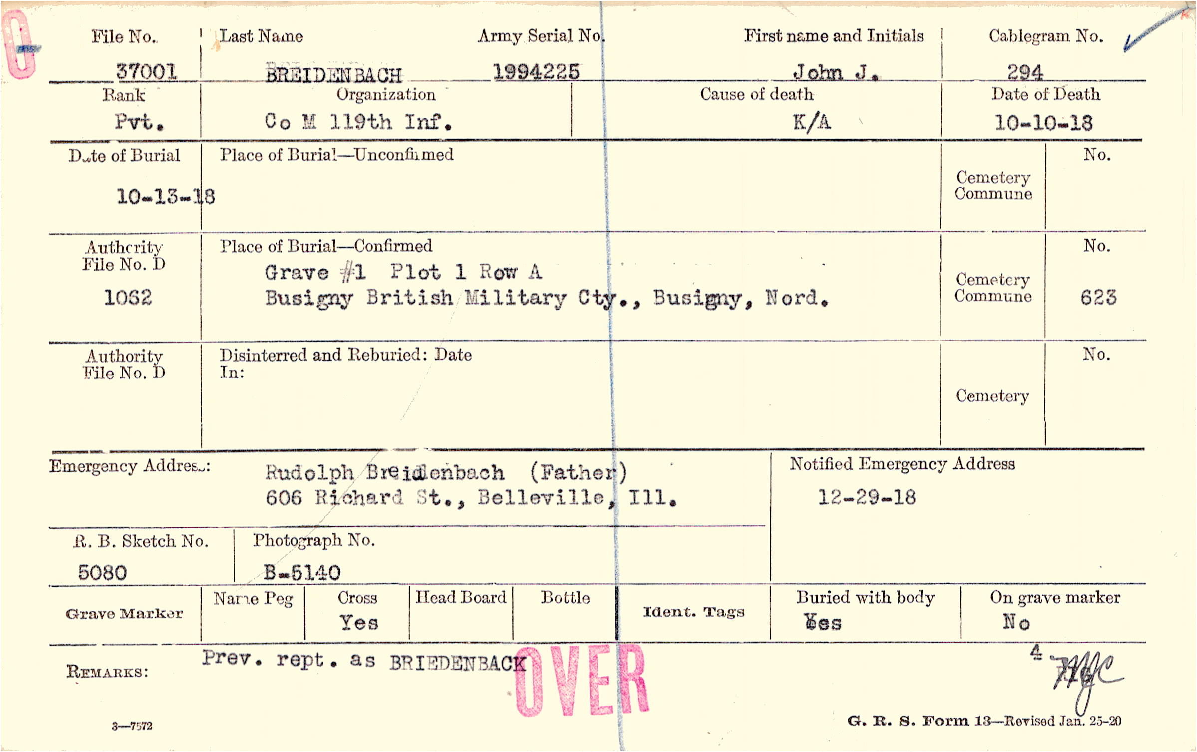 Rudolph Breidenbach (Father), 606 Richard St., Belleville, Ill.