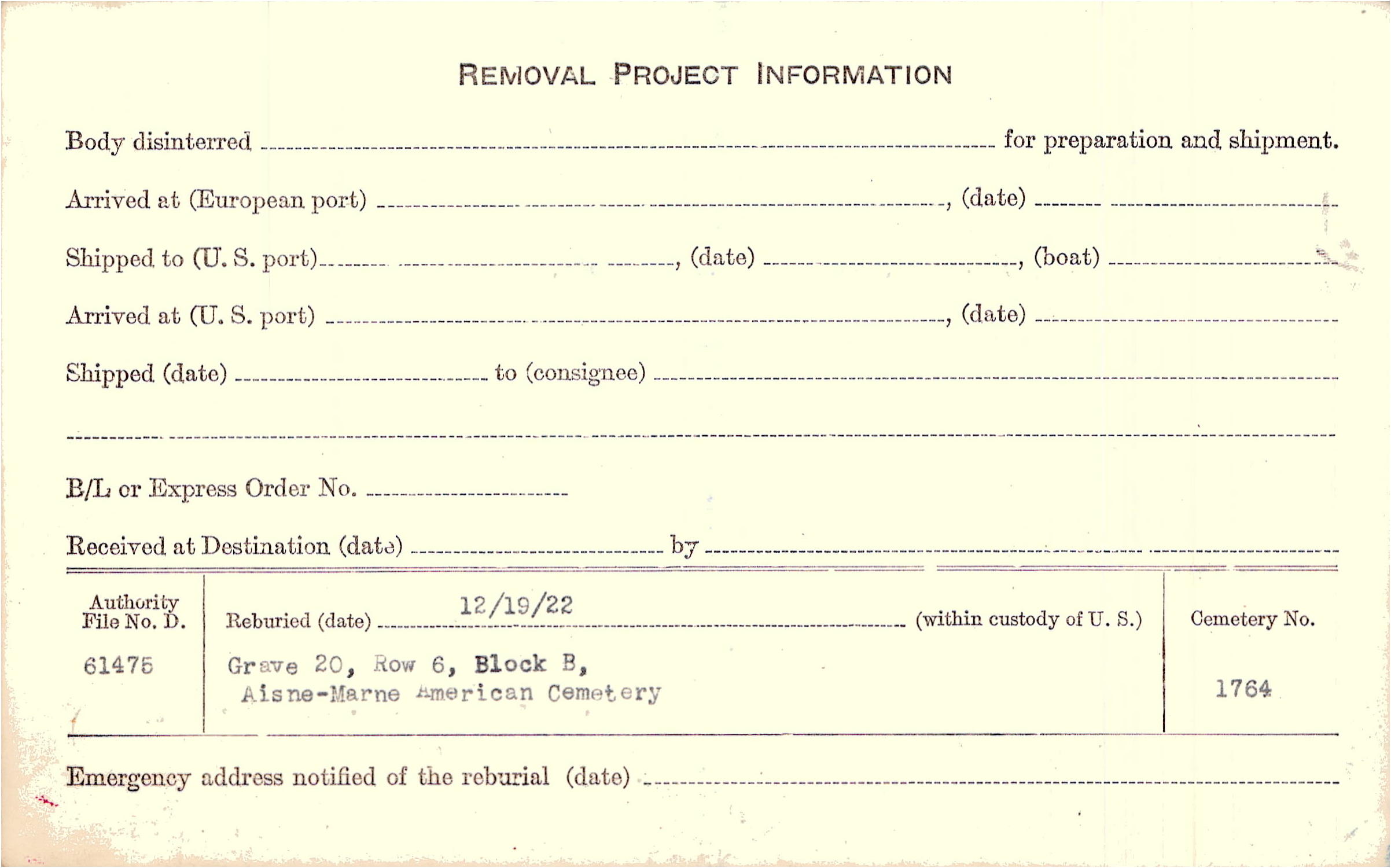 | Permanent Burial in Foreign Cemetery |