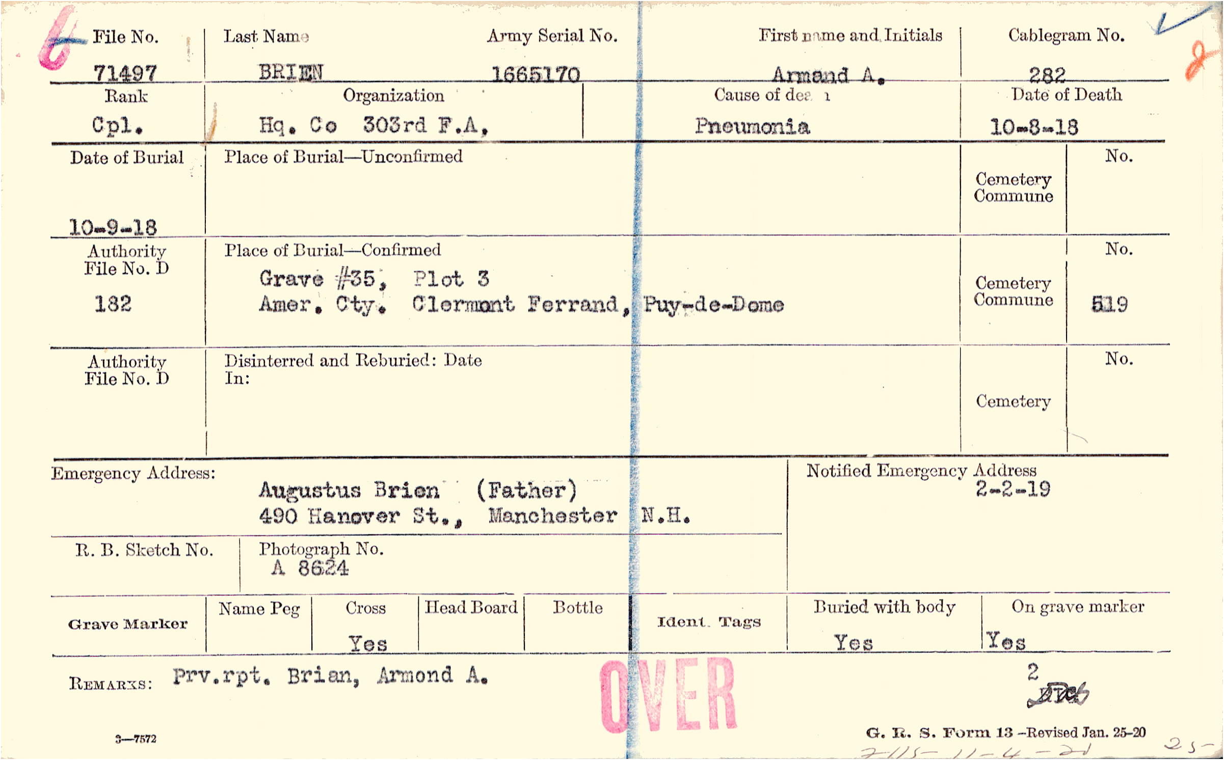 Grave #35, Plot 3,Amer. Cty., Clermont Ferrand, Puy-de-Dome.