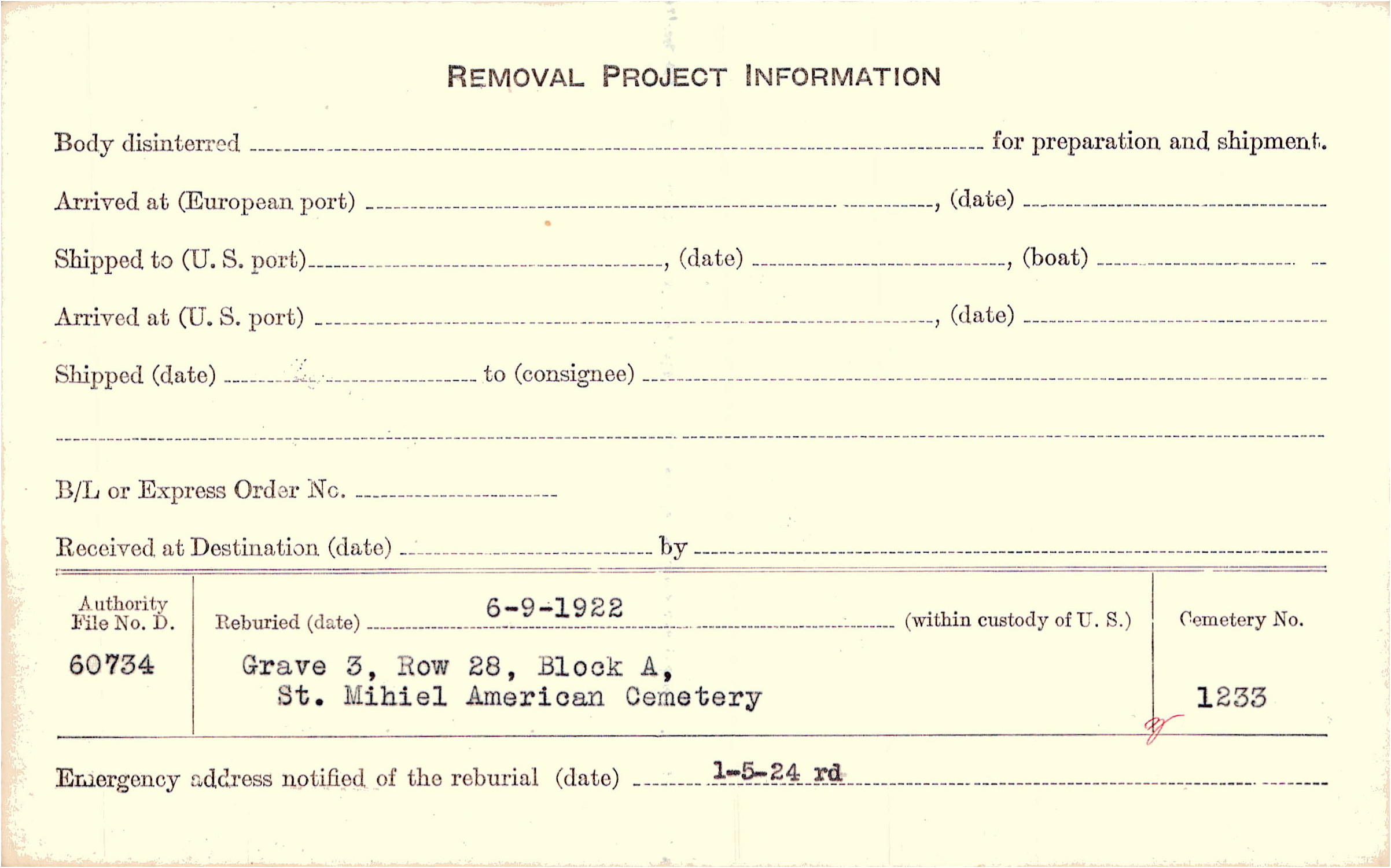 Grave 52, American Plot, French Cemetery, Mehun sur Yerre, Cher