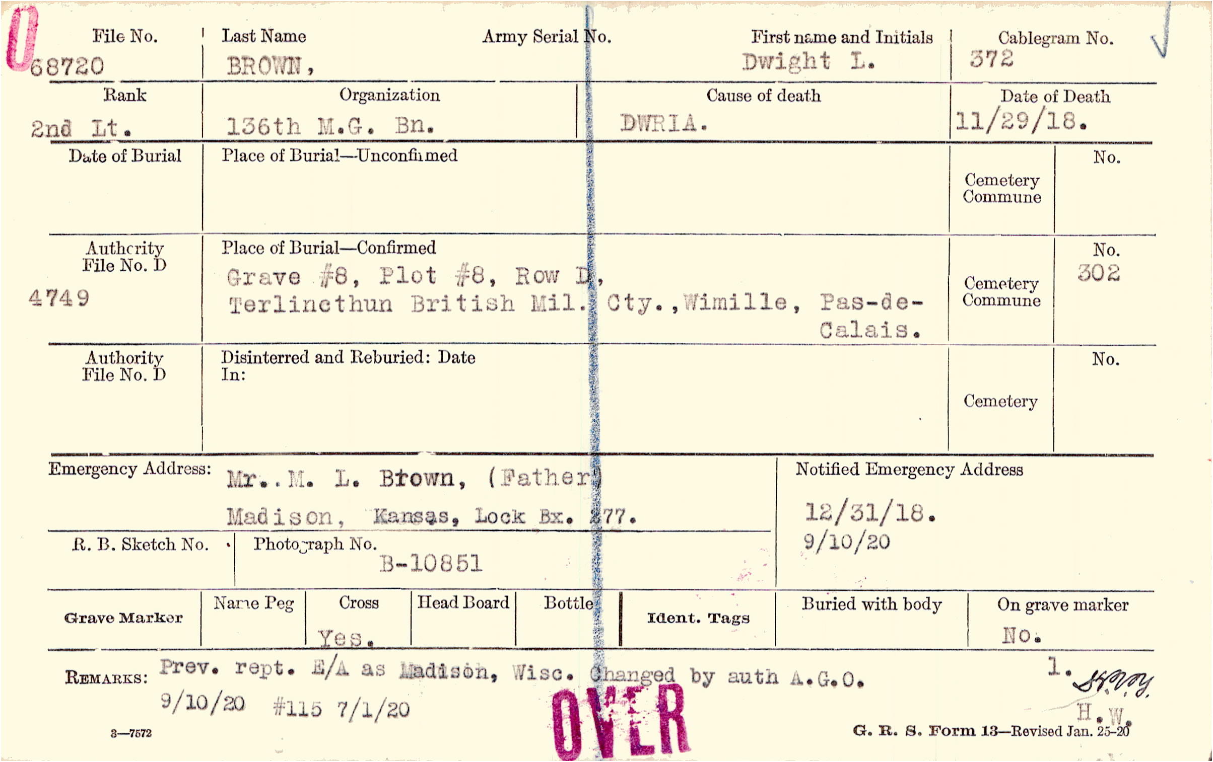 Prev. rept. E/A as Madison, Wisc. Changed by auth A.G.O. 9/10/20