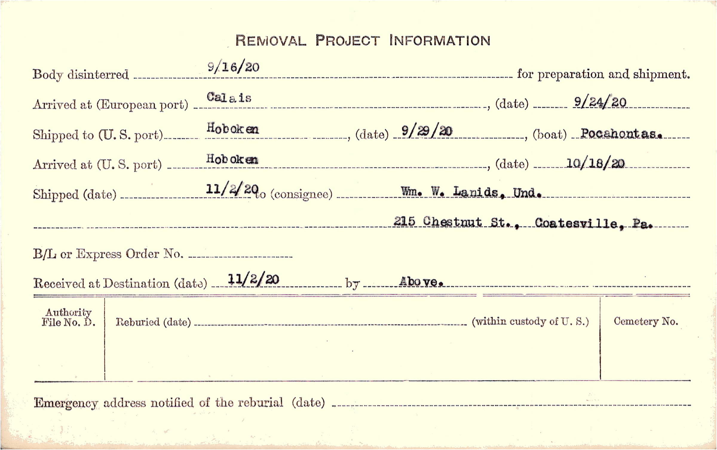 to Wm. W. Lanids, Und., 215 Chestnut St., Coatesville, Pa.