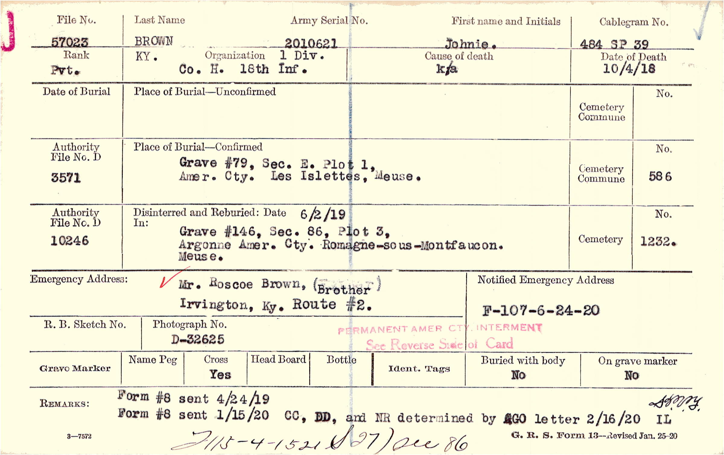 Mr. Roscoe Brown, (Brother), Irvington, Ky. Route #2.