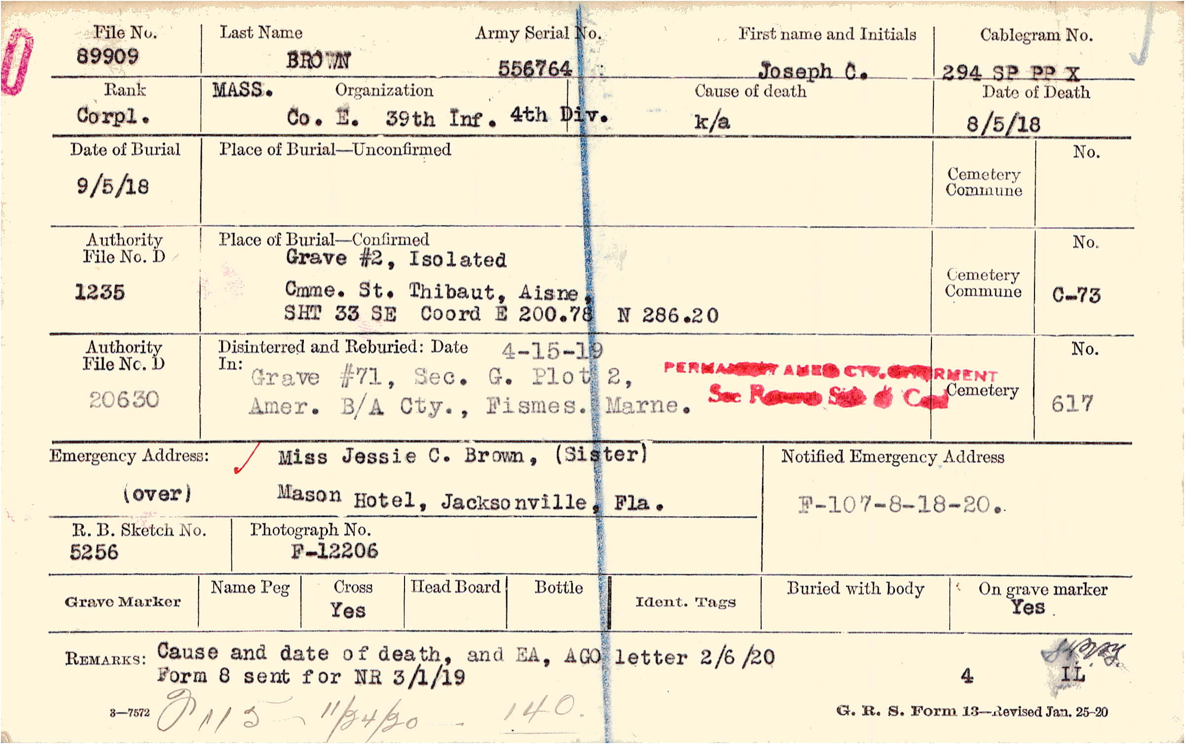 Grave #2, Isolated, Cmme. St. Thibaut, Aisne., SHT 33 SE