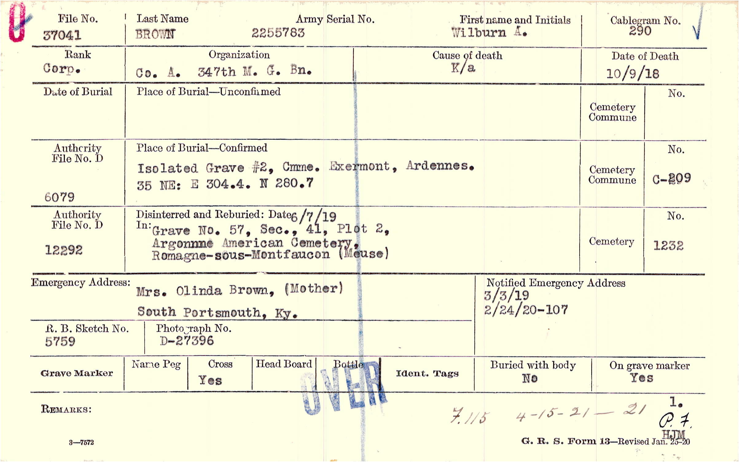 Isolated Grave #2, Cmme. Exermont, Ardennes, 35 NE