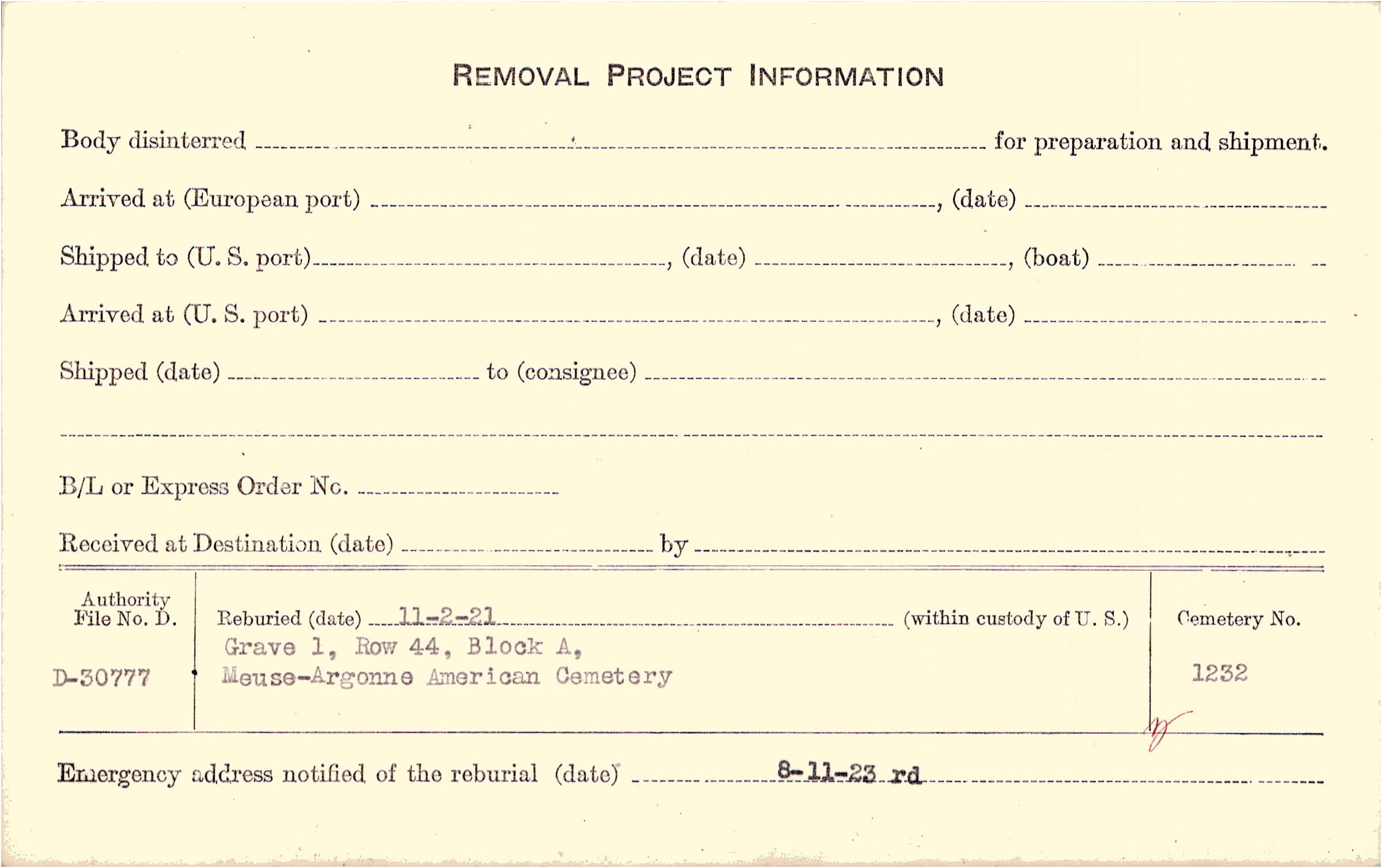 Grave 197, Section 53, Plot 4, Argonne American Cemetery, Romagne-sous-Montfaucon, Meuse