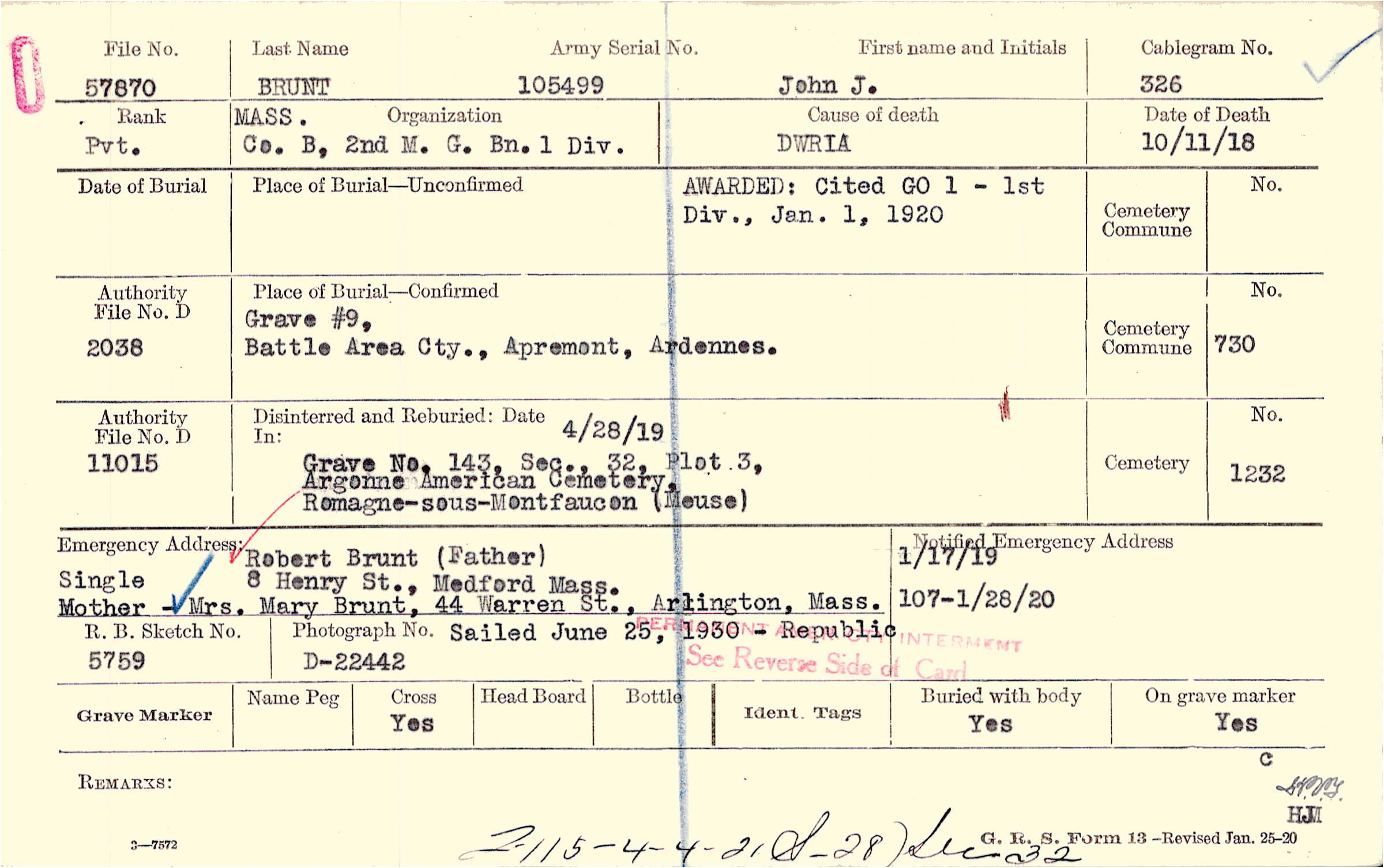 | Reburied (date): |