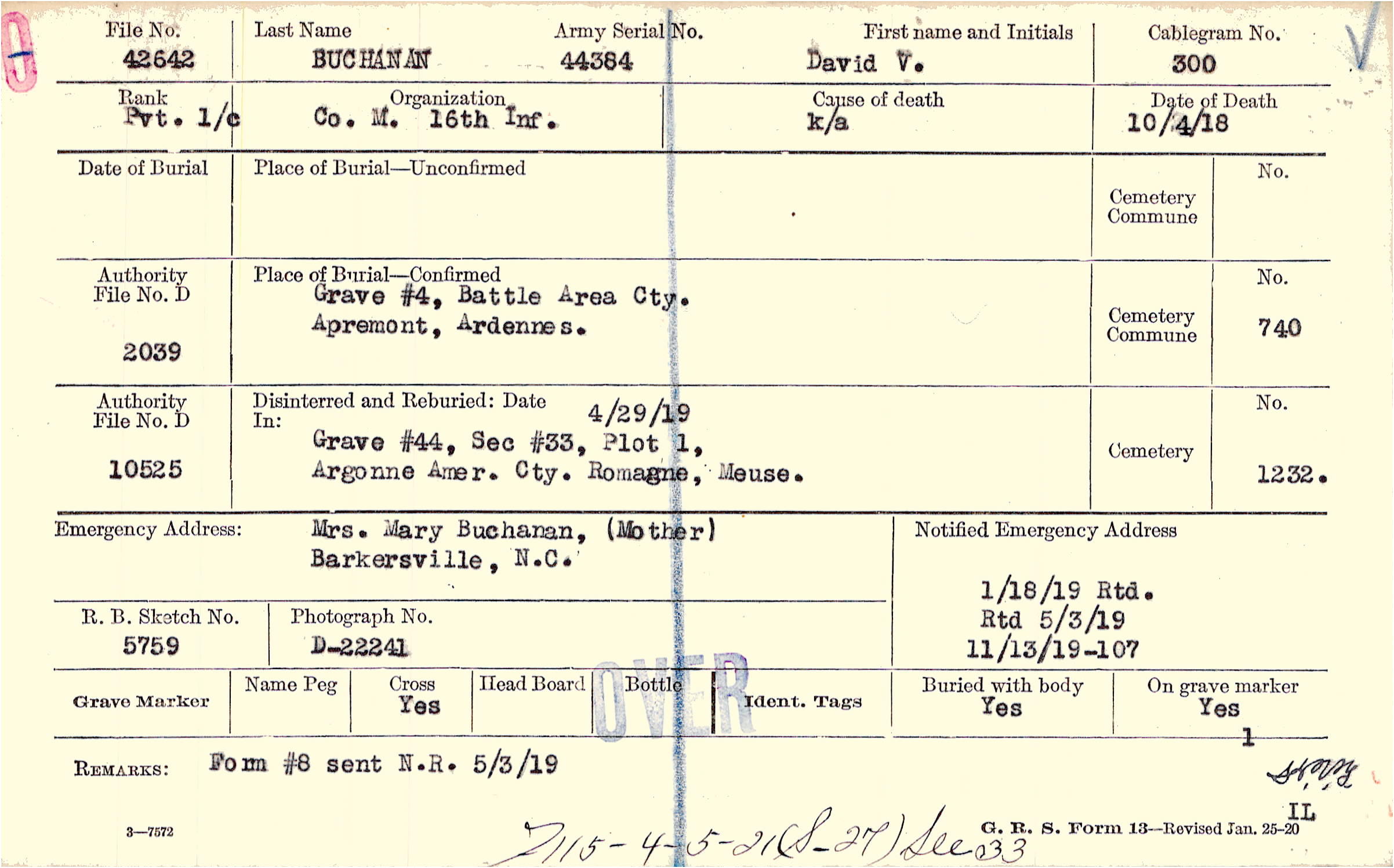 1/18/1919 Rtd, Rtd 5/3/1919, Form 107: 11/13/1919