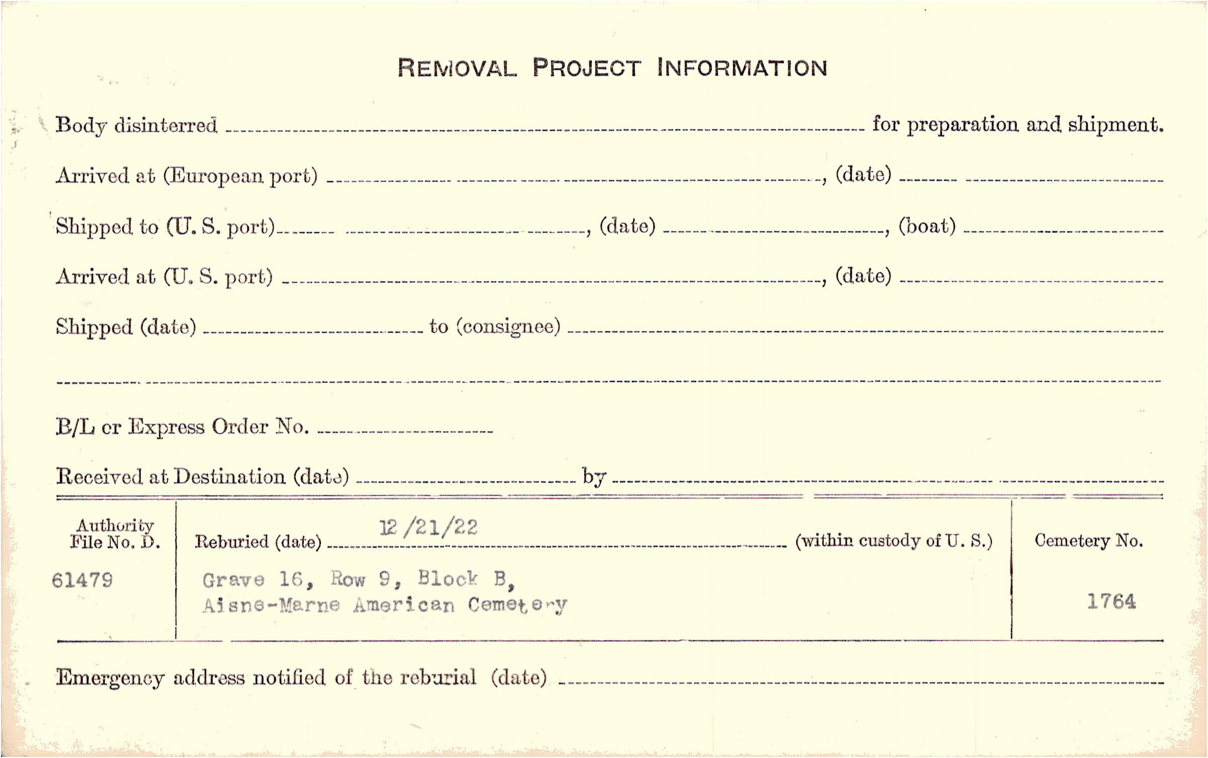 | Permanent Burial in Foreign Cemetery |