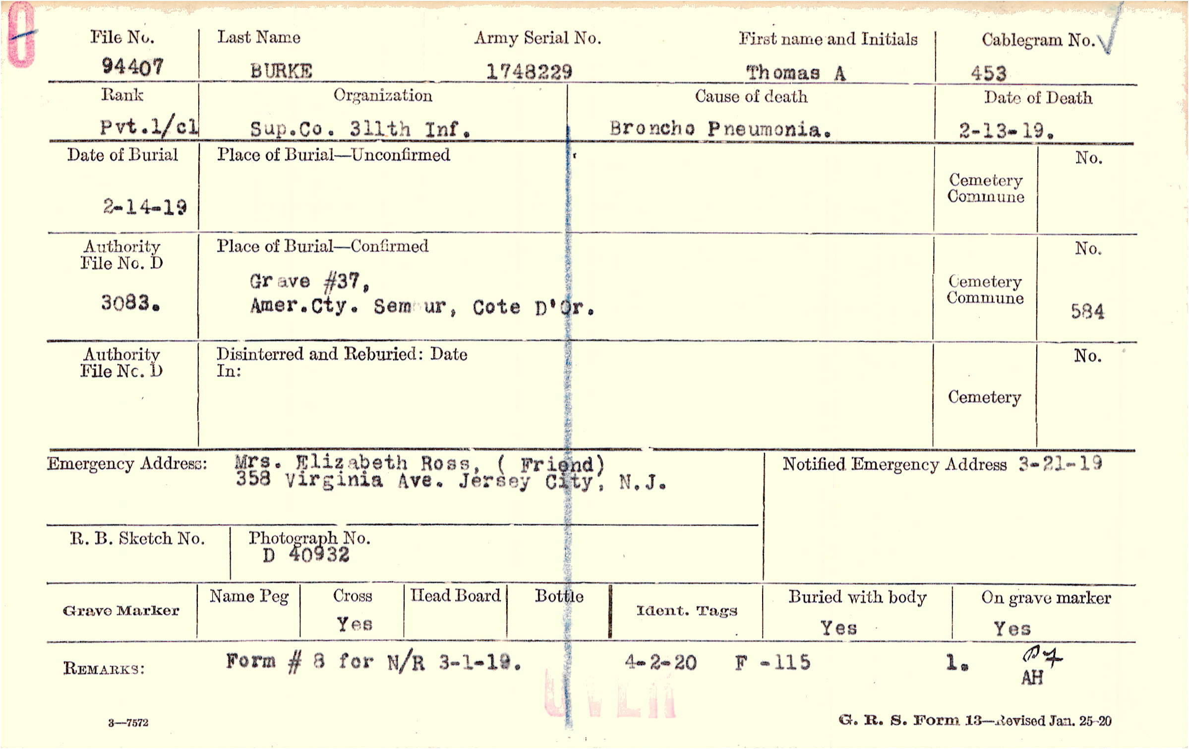 Mrs. Elizabeth Ross, (Friend), 358 Virginia Ave. Jersey City, N.J.