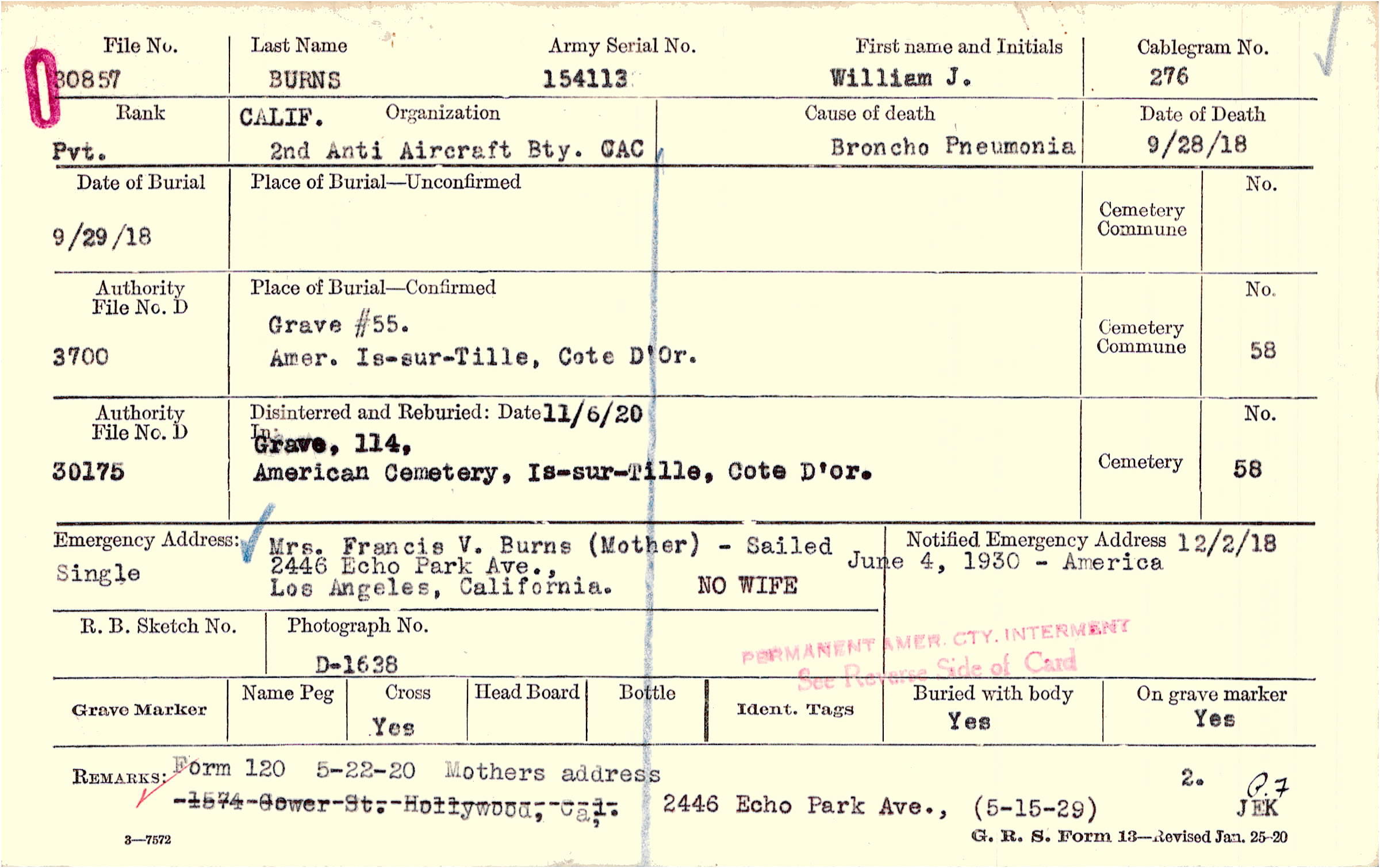 Grave # 55. Amer. Is-sur-Tille, Cote D'Or