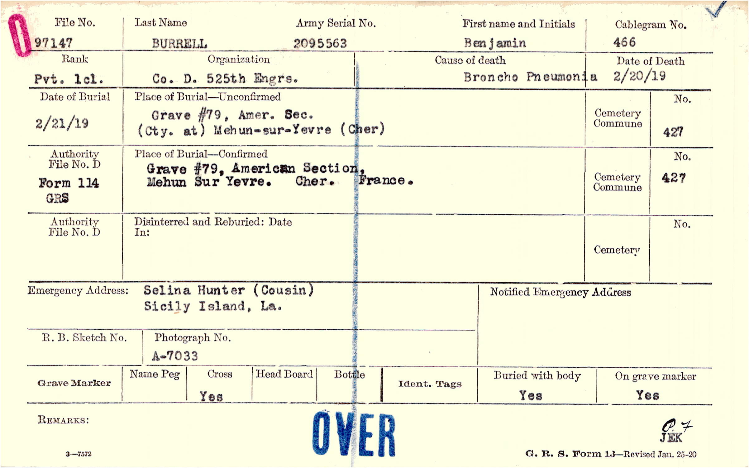 Grave #79, Amer. Sec. (Cty. at) Mehun-sur-Yevre (Cher)