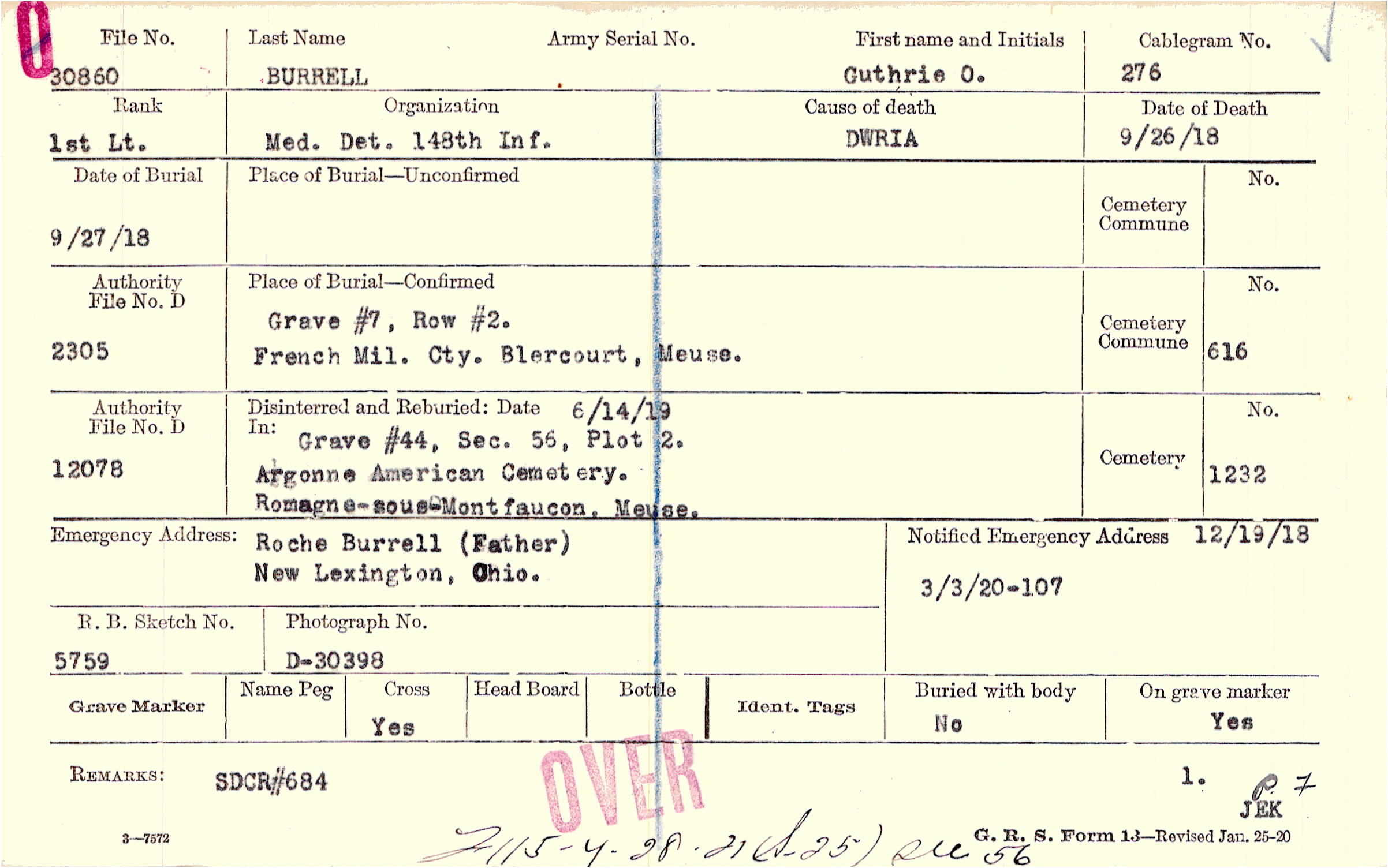 Grave 44, Section 56, Plot 2, Argonne American Cemetery, Romagne-sous-Montfaucon, Meuse