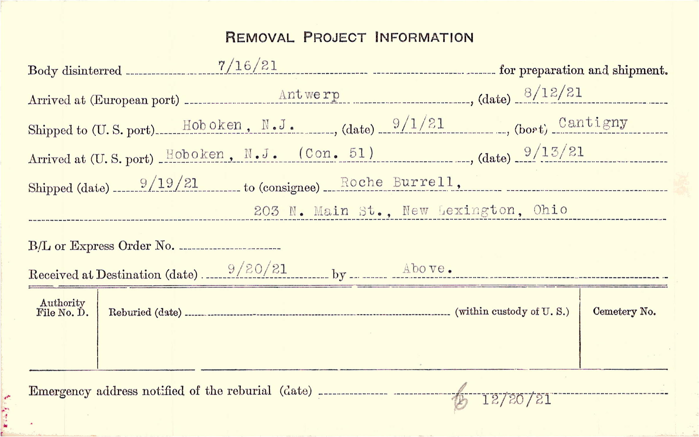 to Roche Burrell, 203 N. Main St., New Lexington, Ohio