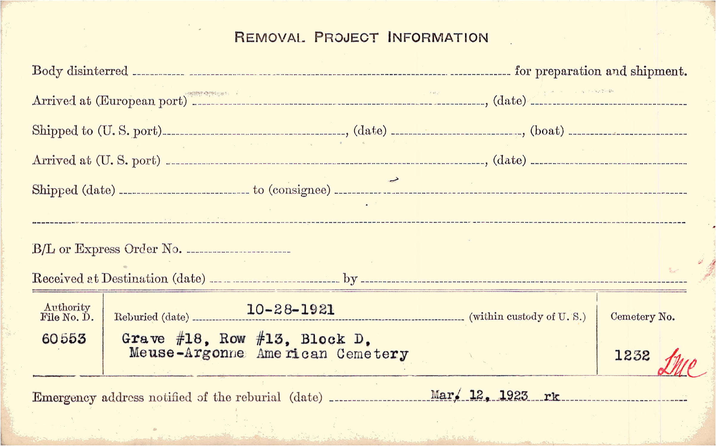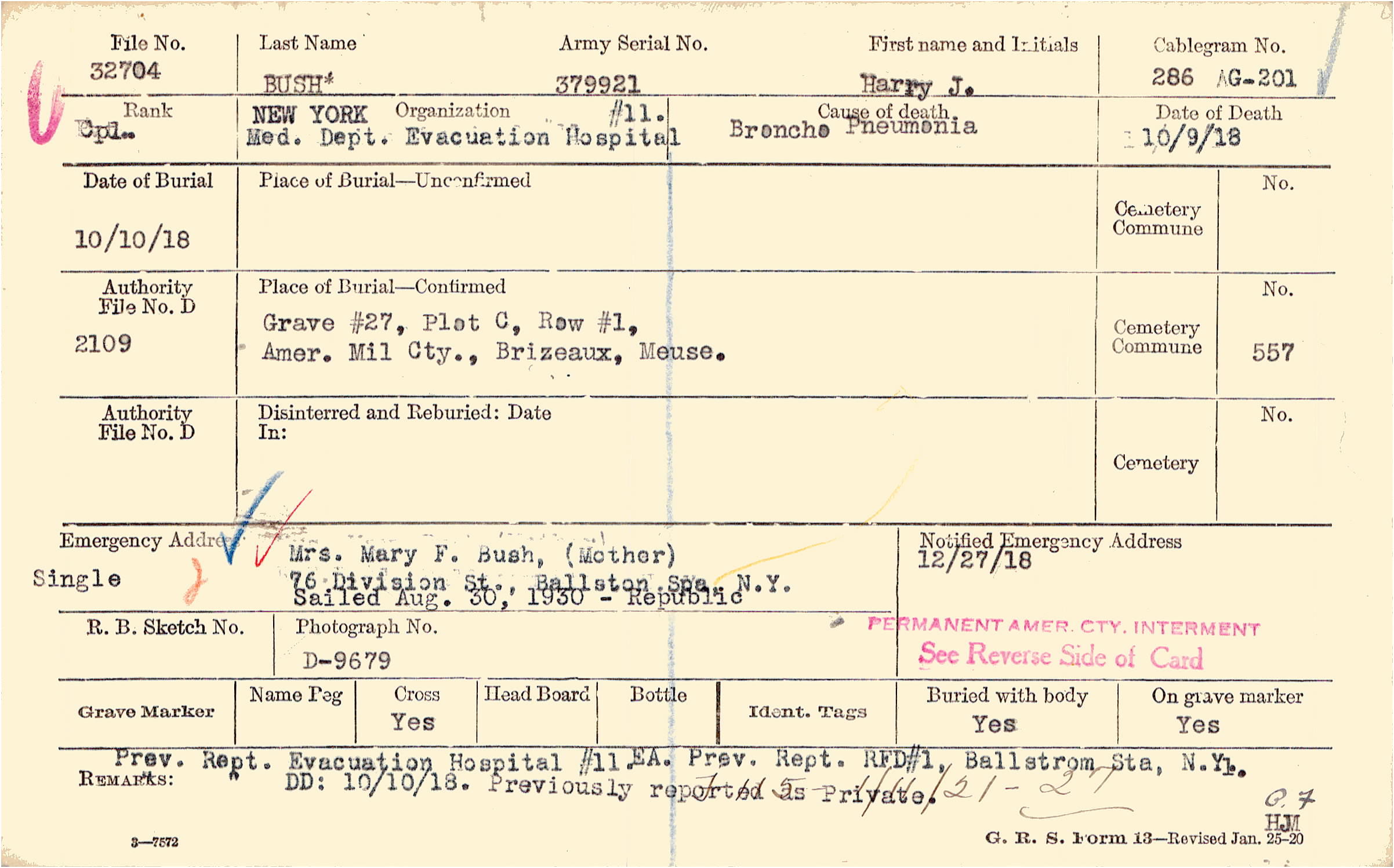 Grave #27, Plot C, Row #1, Amer. Mil Cty., Brizeaux, Meuse.