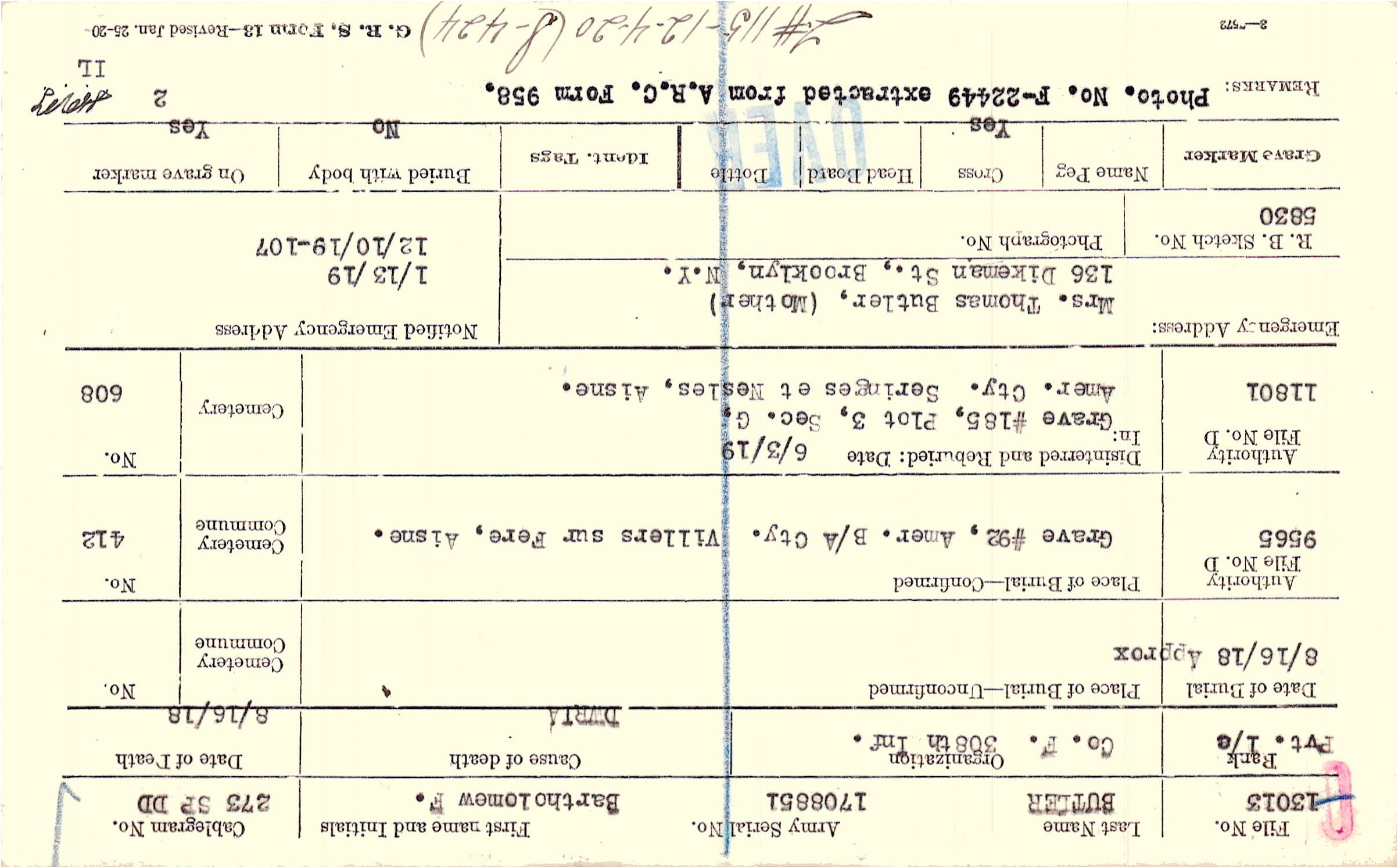 Photo. No. F-22449 extracted from A.R.C. Form 958., F#115 - 12-4-20 (S-424)