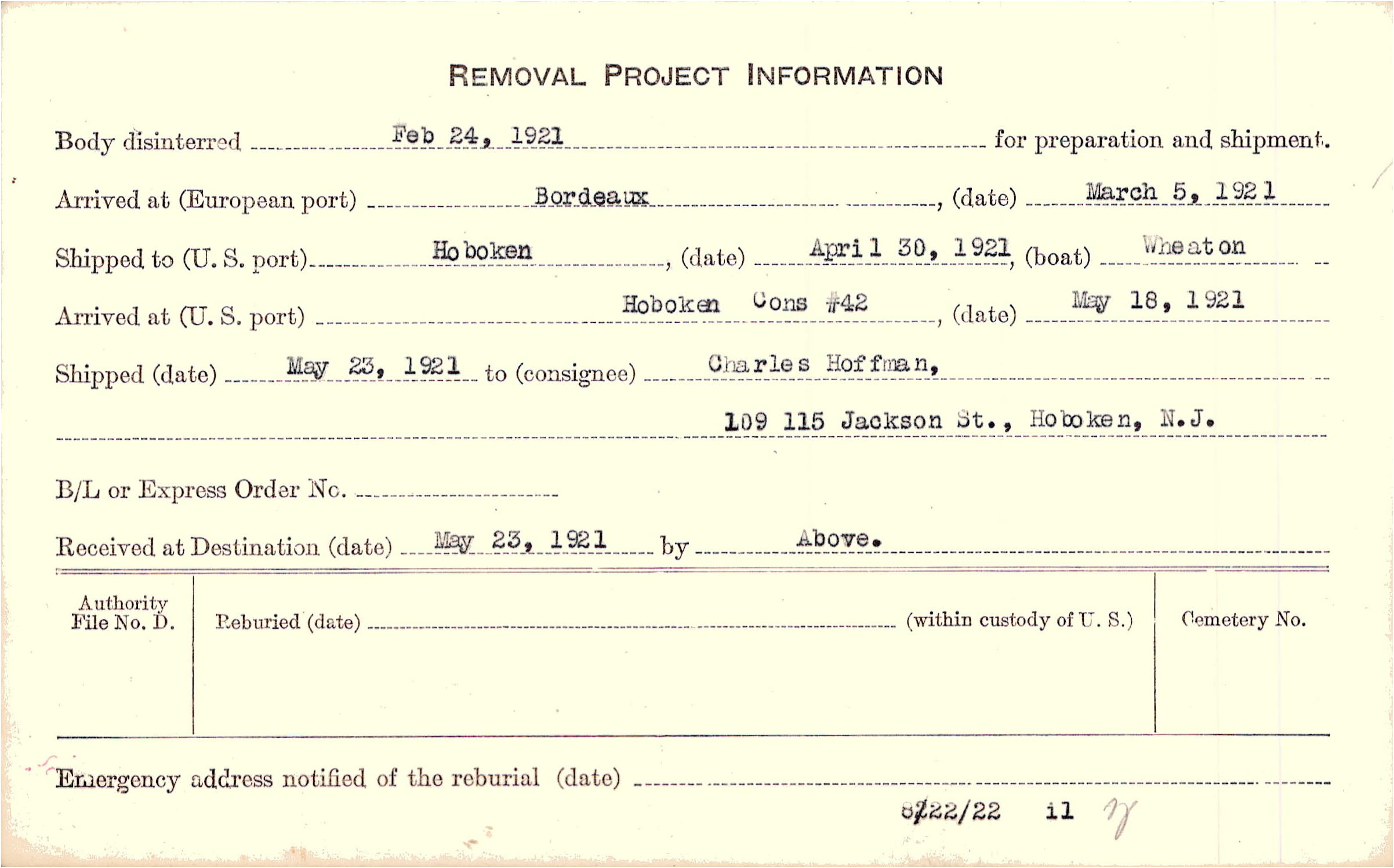 to Charles Hoffman, 109 115 Jackson St., Hoboken, N. J.