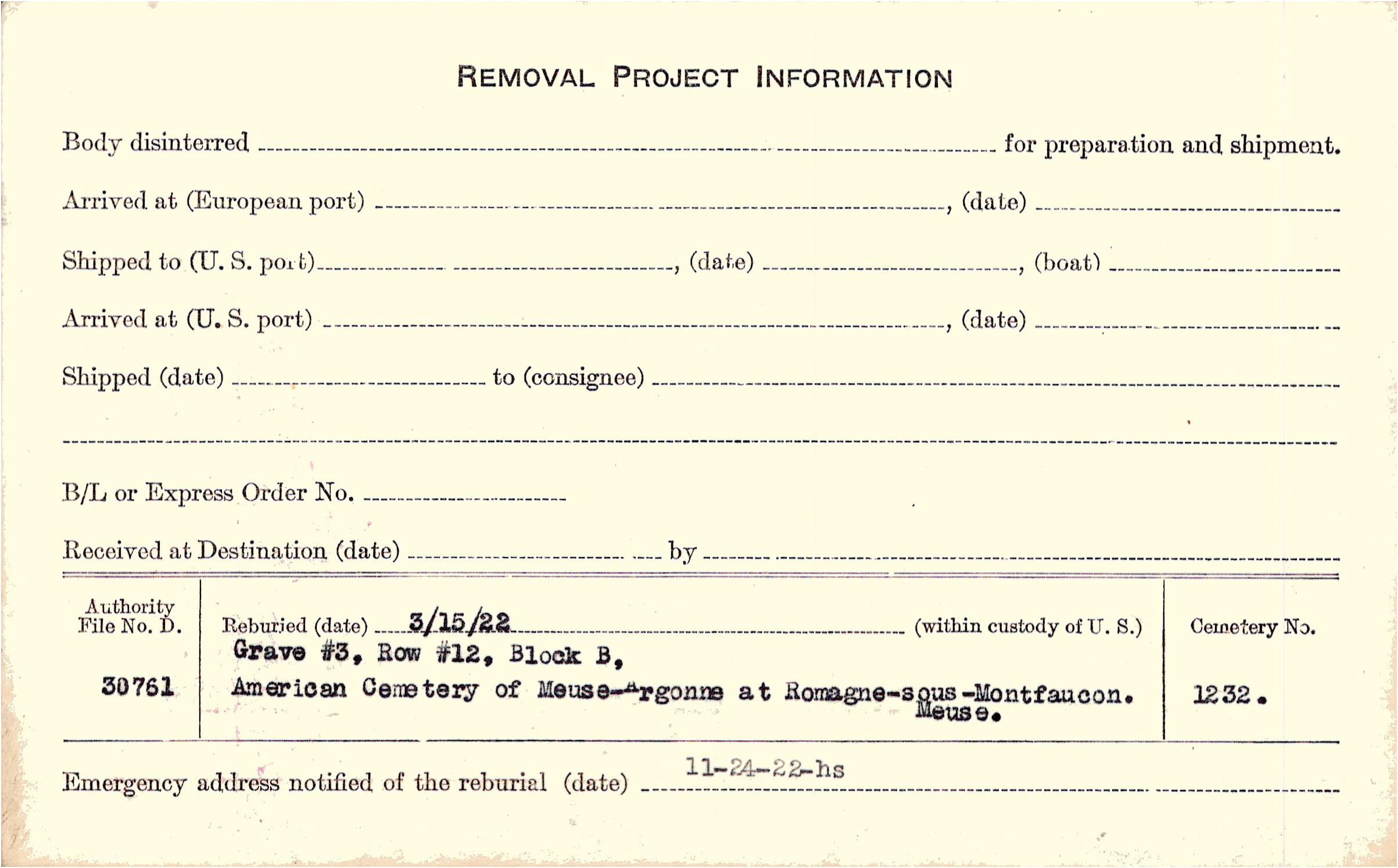 | Permanent Burial in Foreign Cemetery |