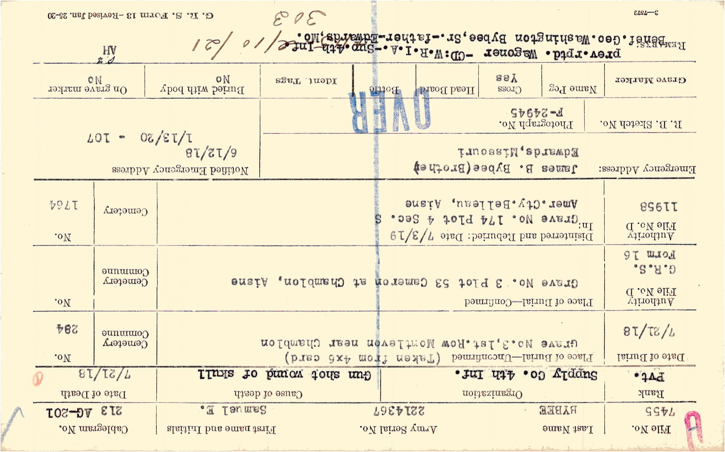 Grave 174, Section S, Plot 4, American Cemetery, Belleau, Aisne