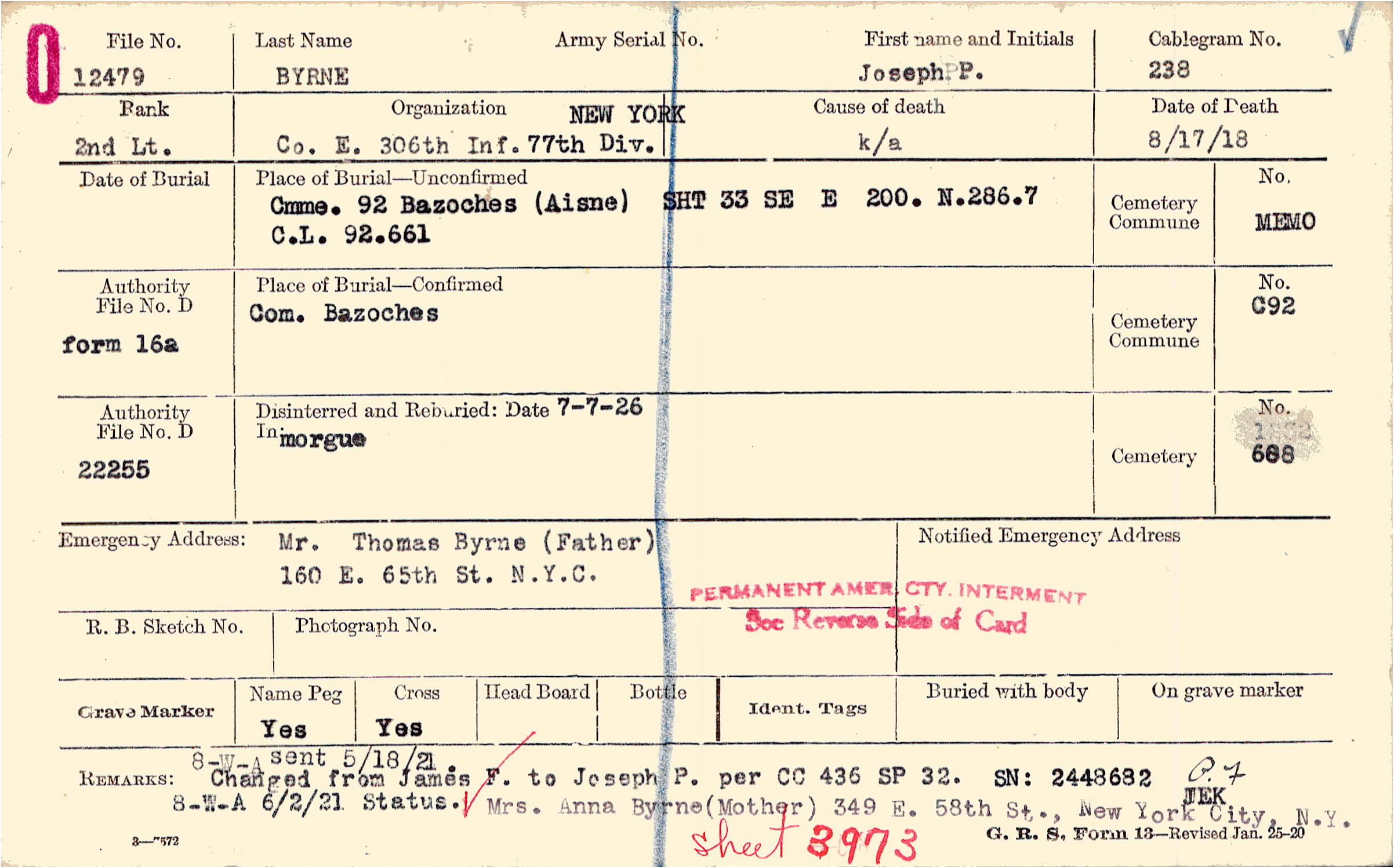 | Permanent Burial in Foreign Cemetery |