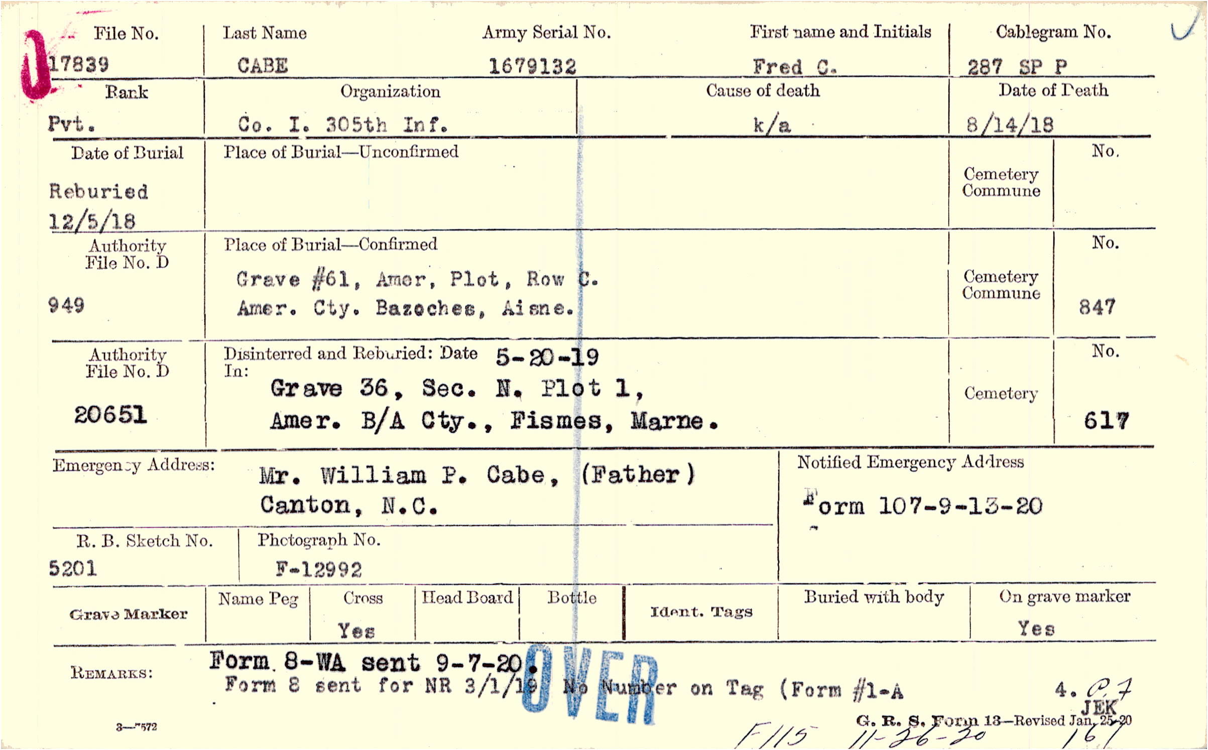 Reburied 12/5/1918