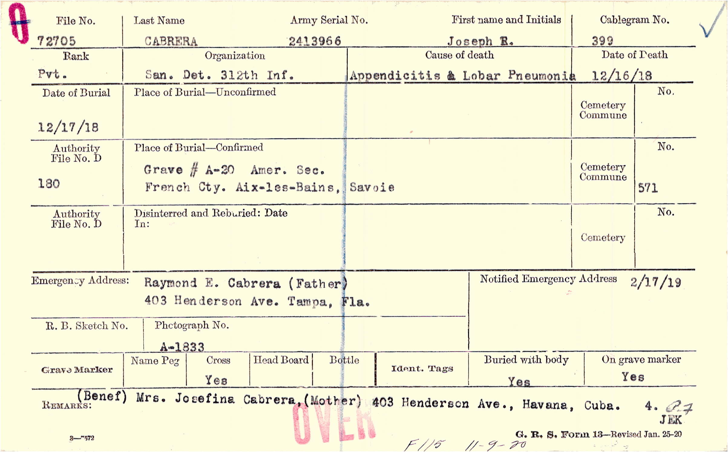 Raymond E. Cabrera (Father), 403 Henderson Ave., Tampa, Fla.