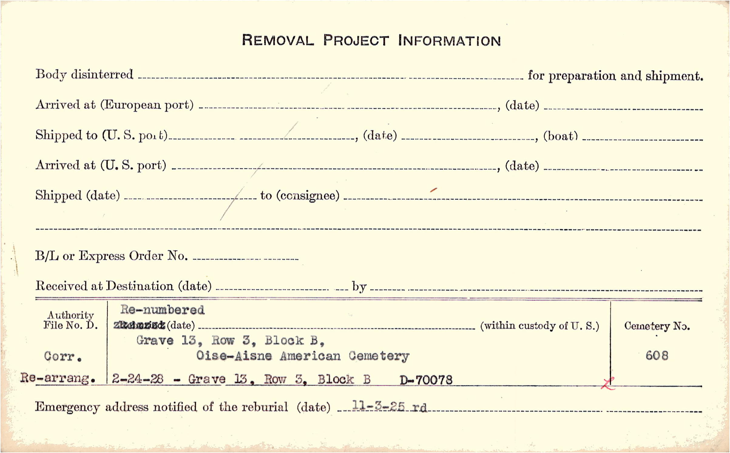 Grave #5. Amer. B/A Cty. Villers sur Fere, Aisne.
