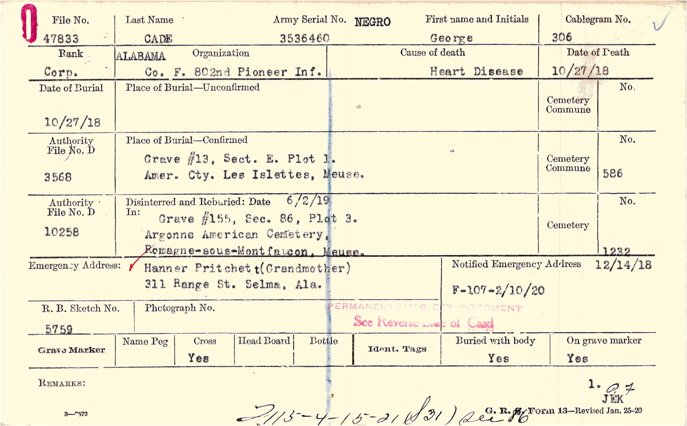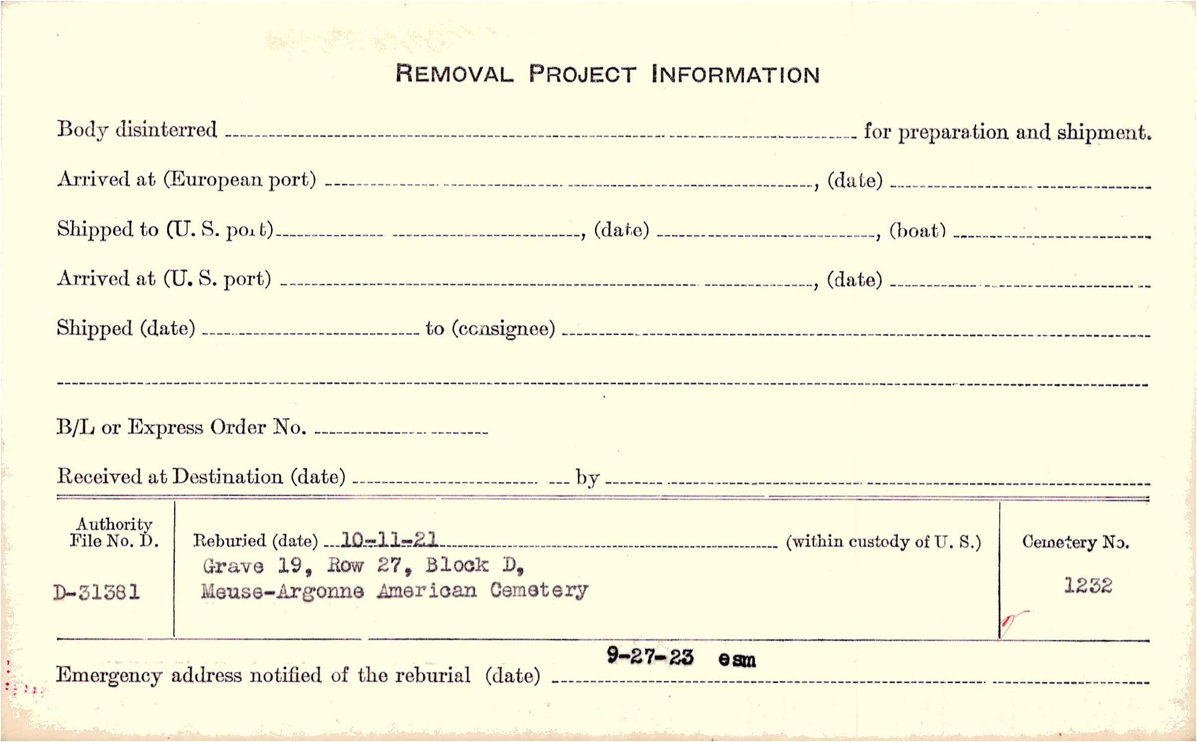 Grave 155, Section 86, Plot 3, Argonne American Cemetery, Romagne-sous-Montfaucon, Meuse