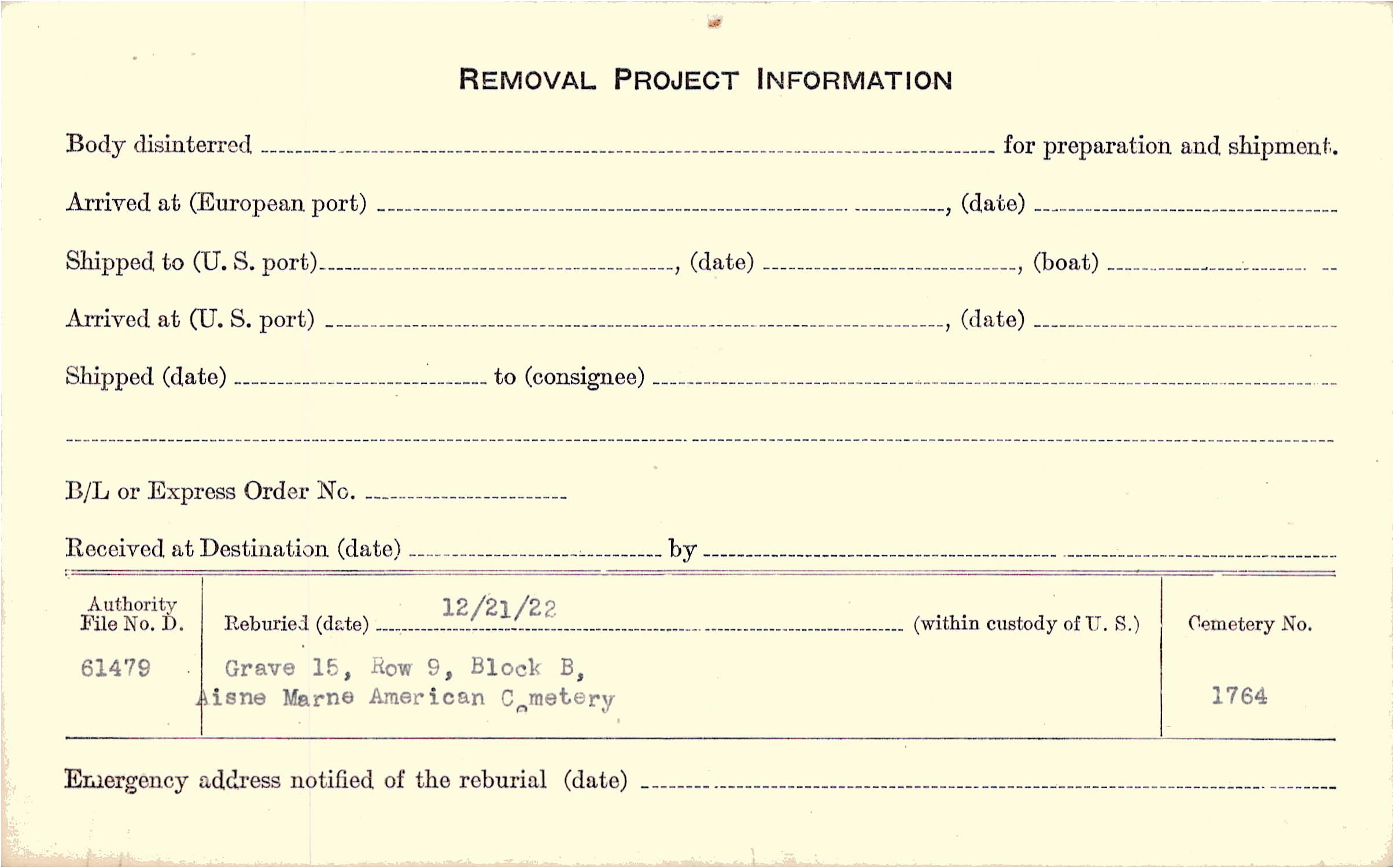 Award - Cited in Go 1, 1st Div., 1-1-20,Grave No. 235, Row 1, Plot 15, Cty. Amer. Clermont-Ferrand, Puy-de-Dome.