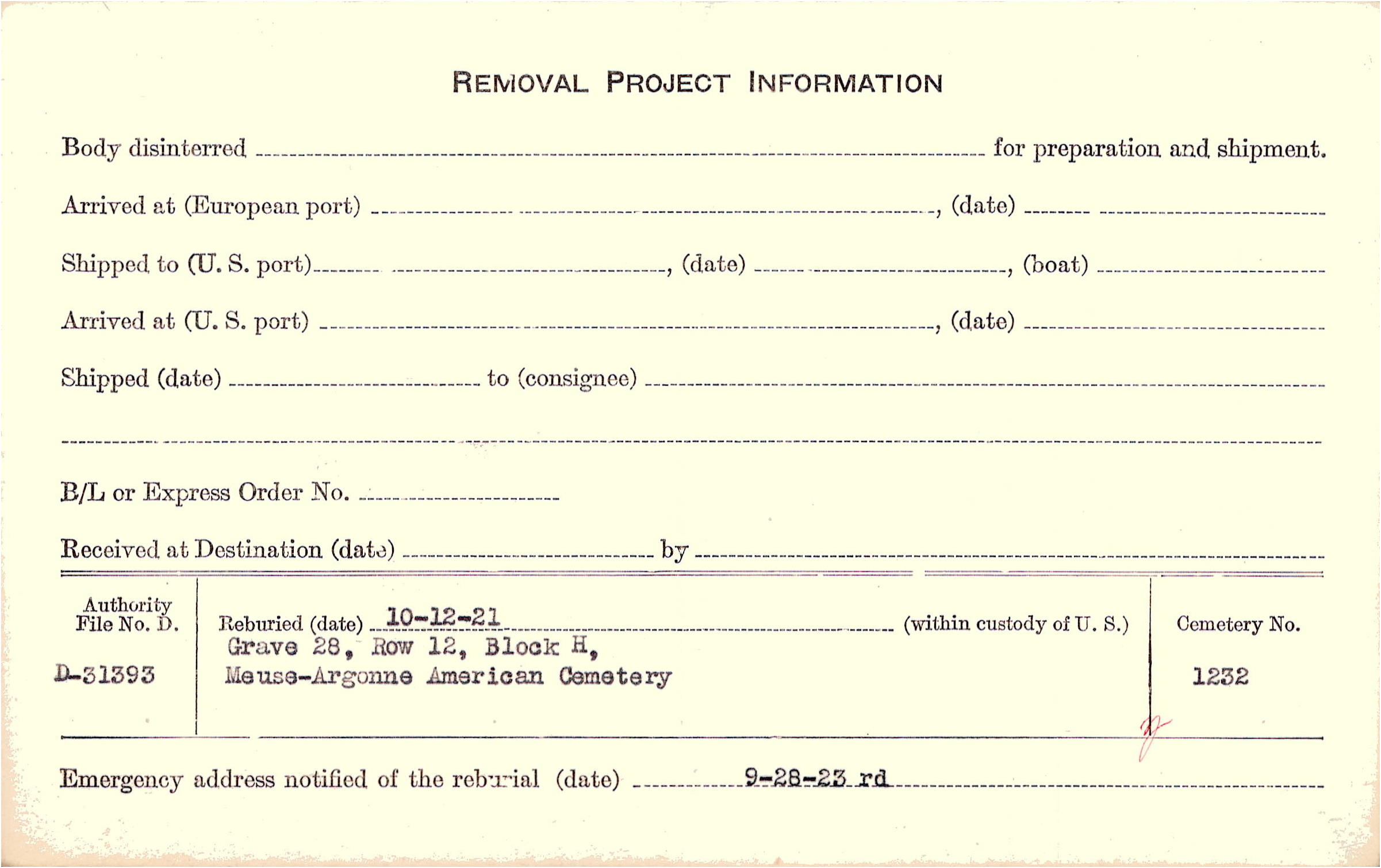 | Permanent Burial in Foreign Cemetery |