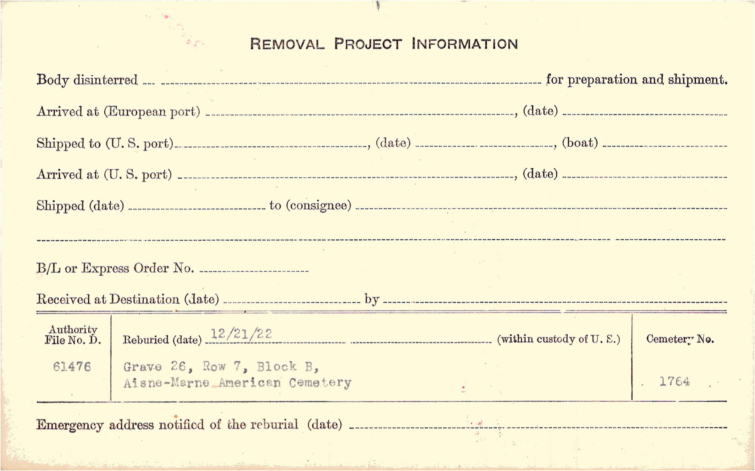 | Permanent Burial in Foreign Cemetery |