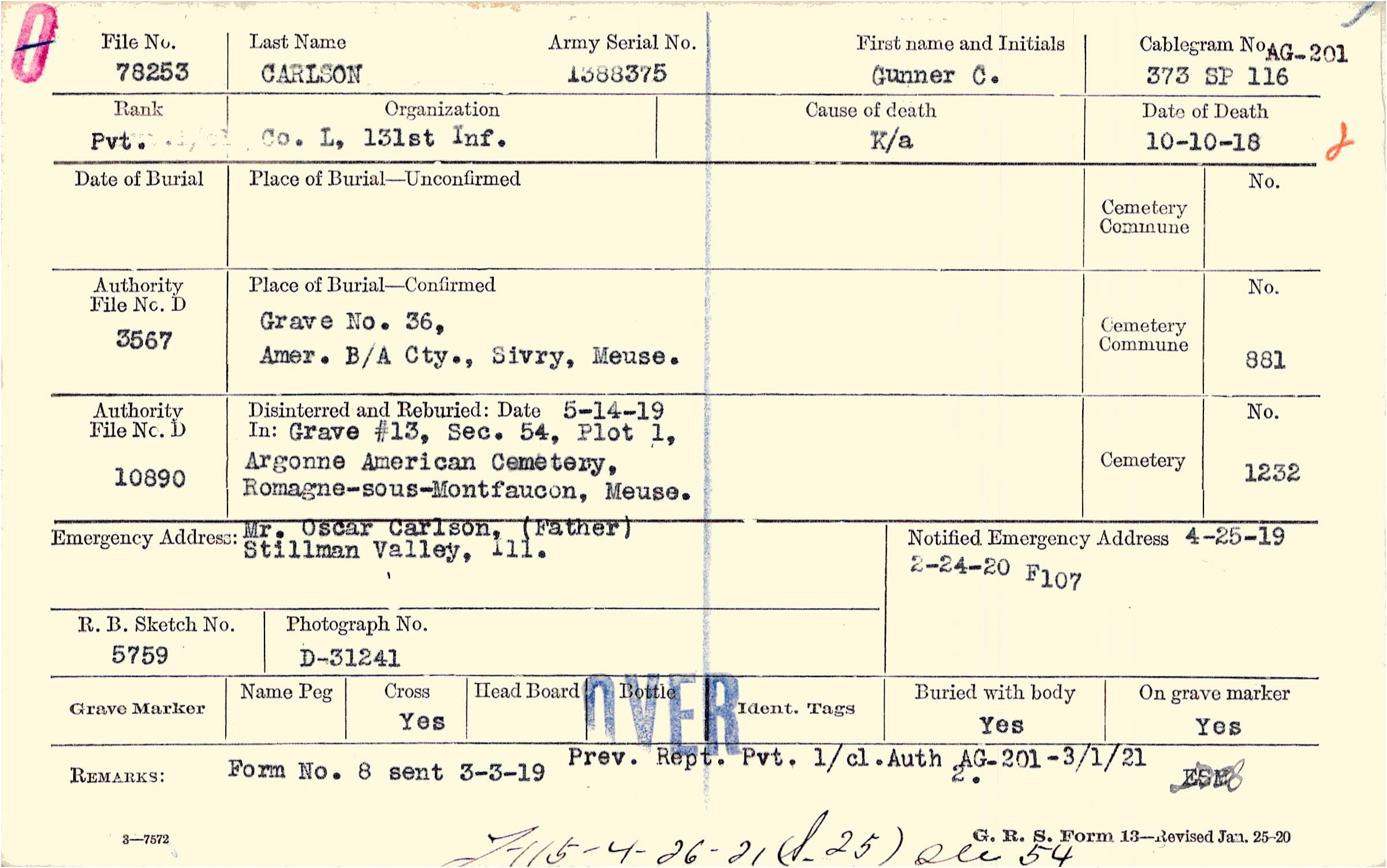 Grave 36, Amer. B/A Cty., Sivry, Meuse.