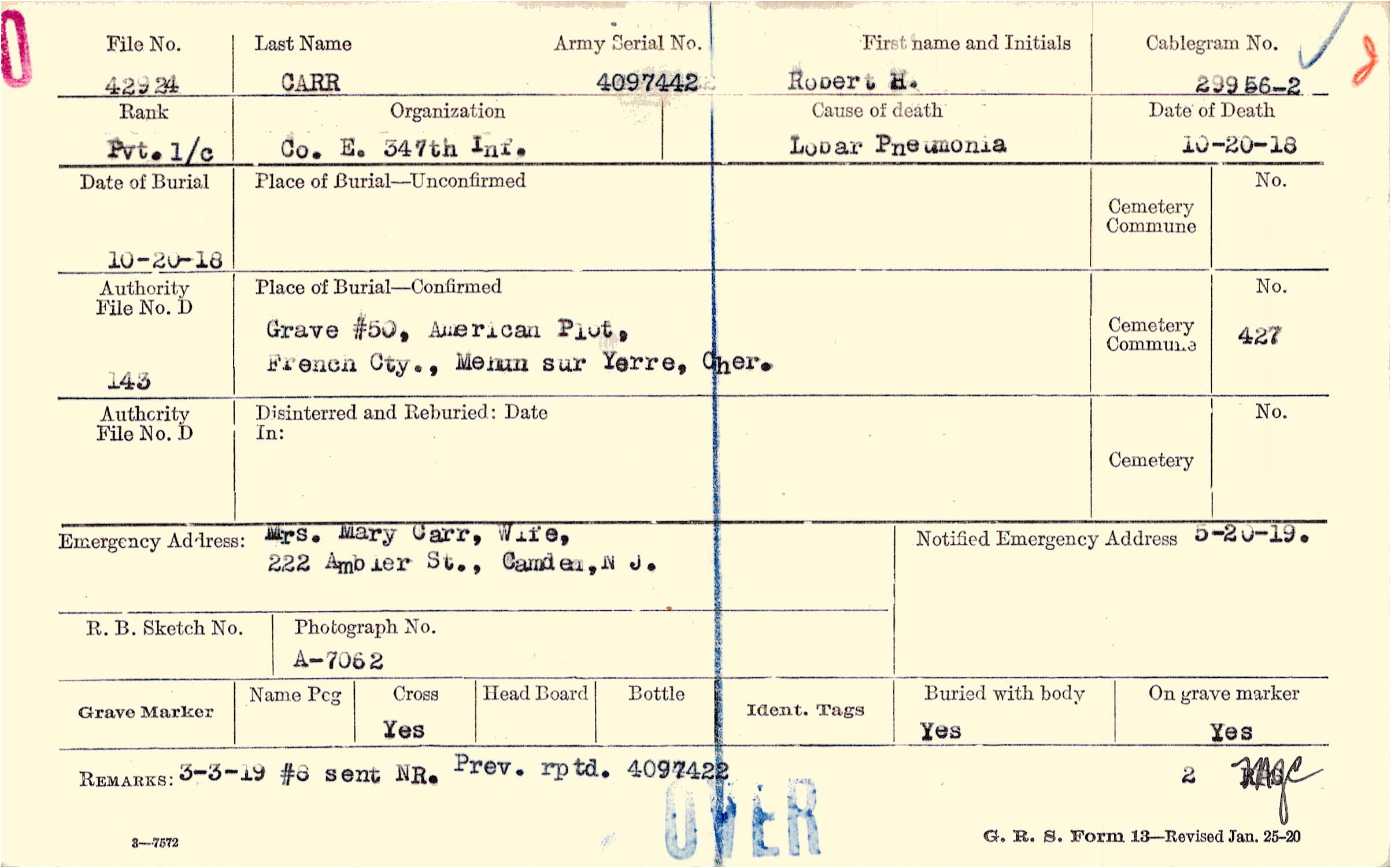 Grave #50, American Plot, French Cty., Mehun sur Yerre, Cher