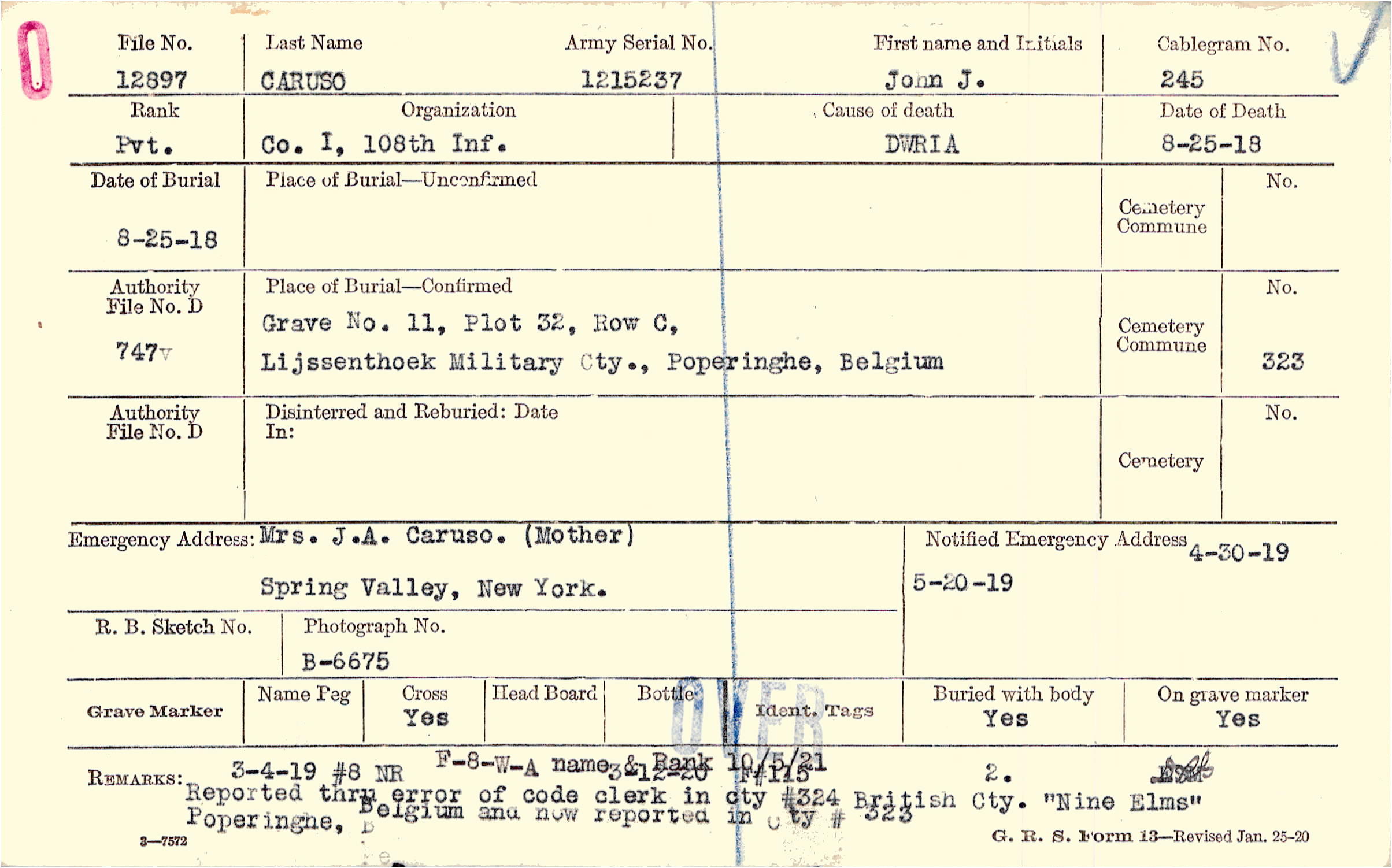 Reported thru error of code clerk in cty #324 British Cty. "Nine Elms" Poperinghe, Belgium and now reported in cty # 323, 3-4-19 #8 NR Reported thru error of code clerk in cty #324 British Cty. "Nine Elms" Poperinghe, Belgium and now reported in Cty # 323 F-8-W-A name & Rank 10/5/21, 3-12-20 F#115