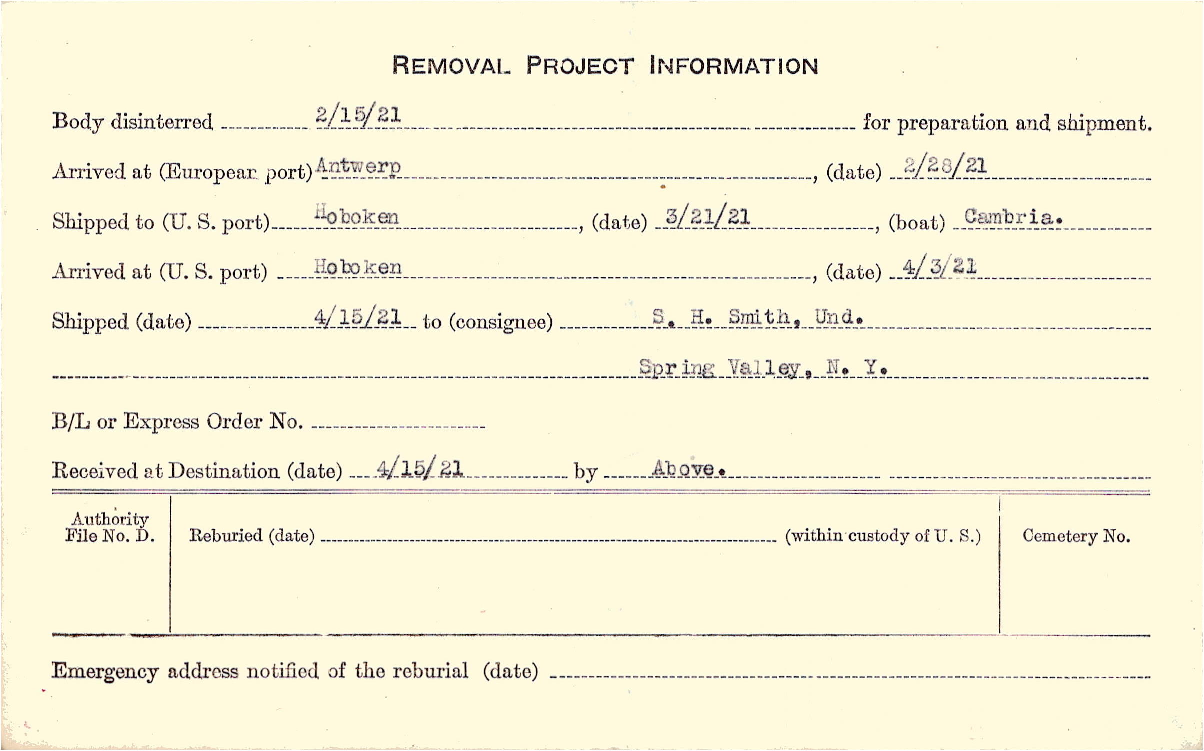 to S. H. Smith, Und., Spring Valley, N. Y.