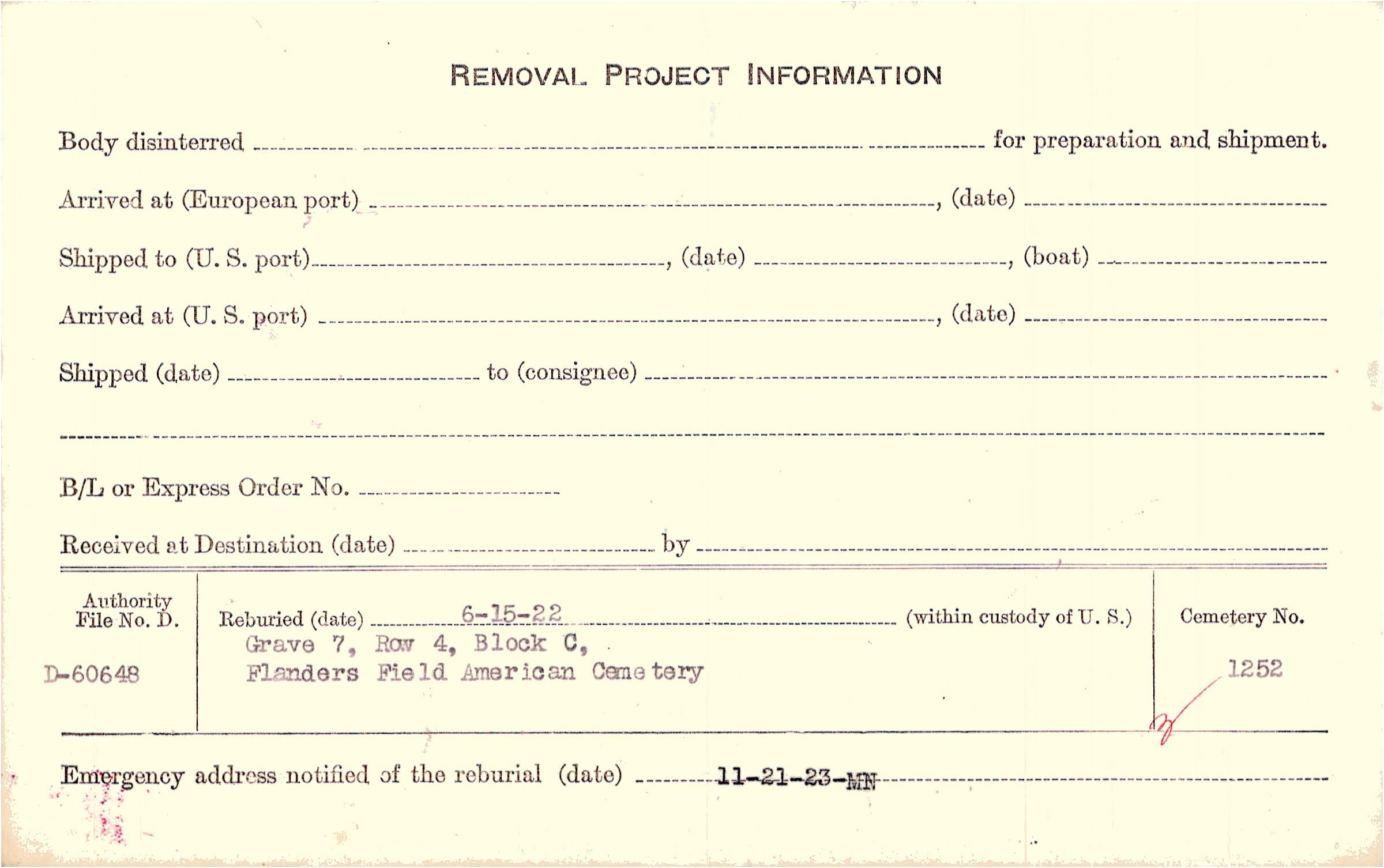 | Permanent Burial in Foreign Cemetery |