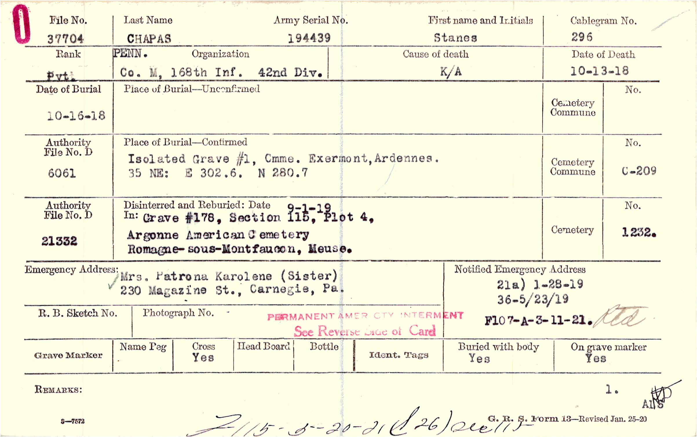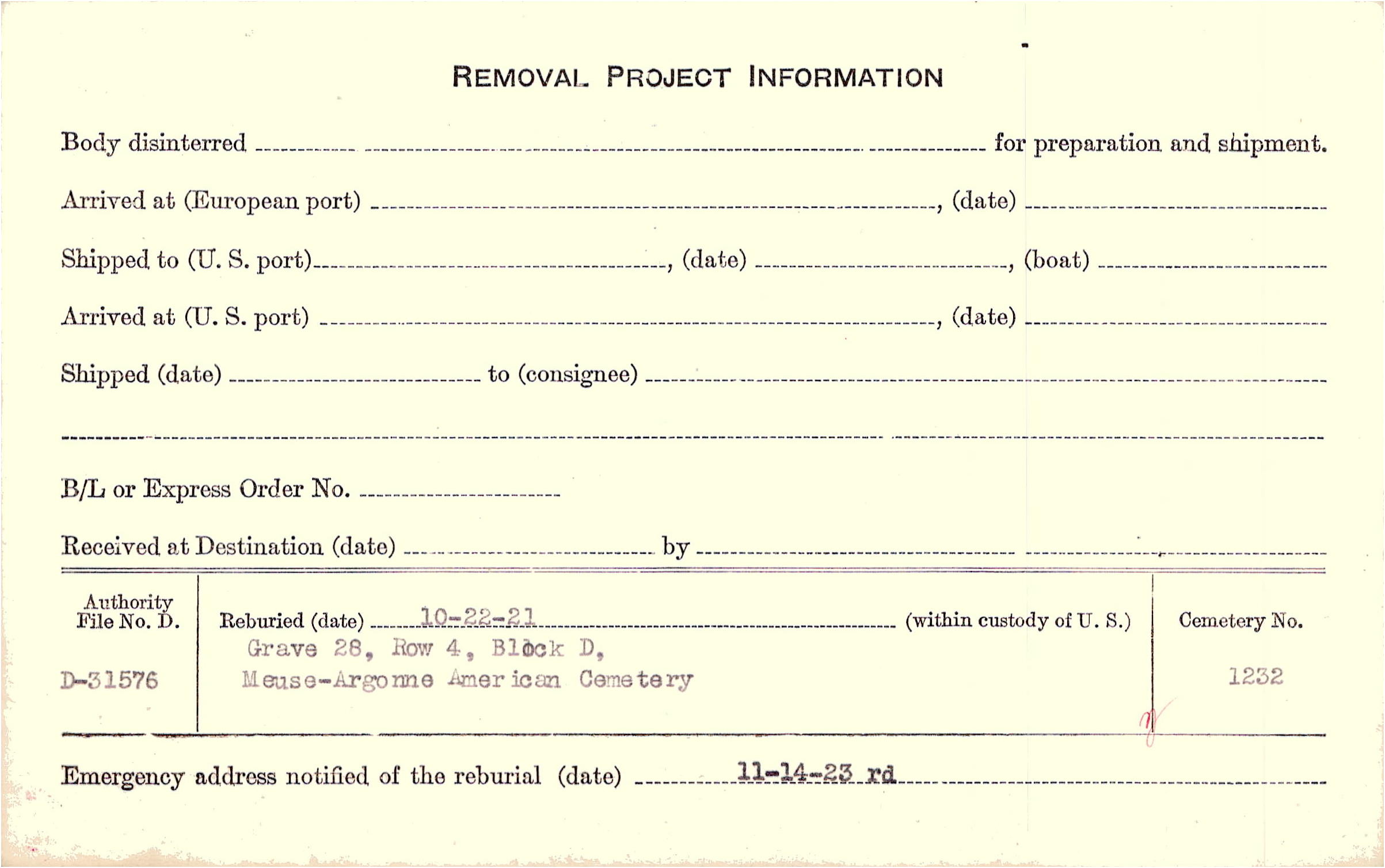 | Permanent Burial in Foreign Cemetery |