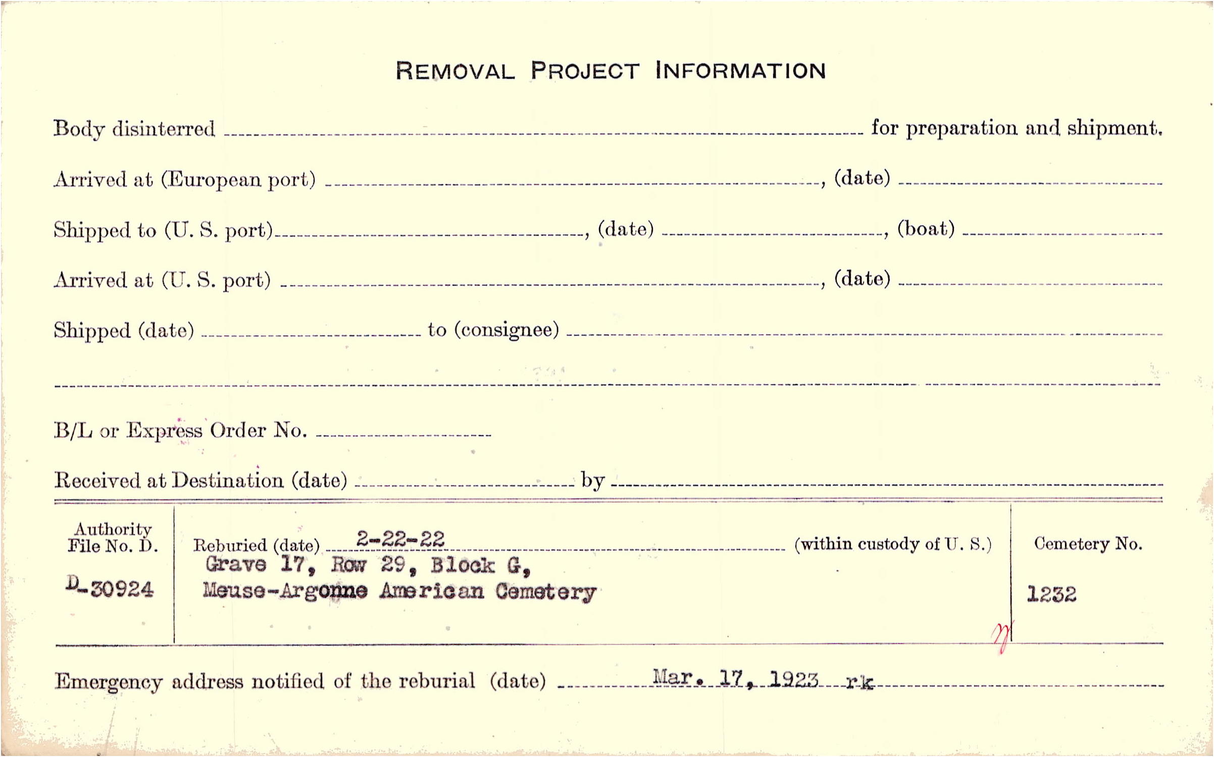 Grave 76, Section 10, Plot 2, Argonne American Cemetery, Romagne-sous-Montfaucon, Meuse