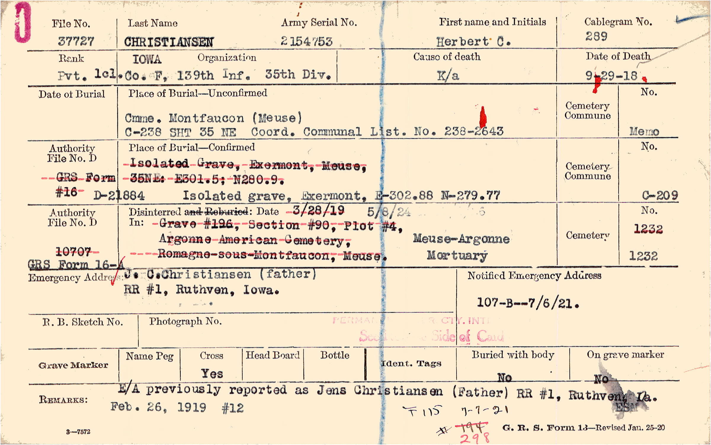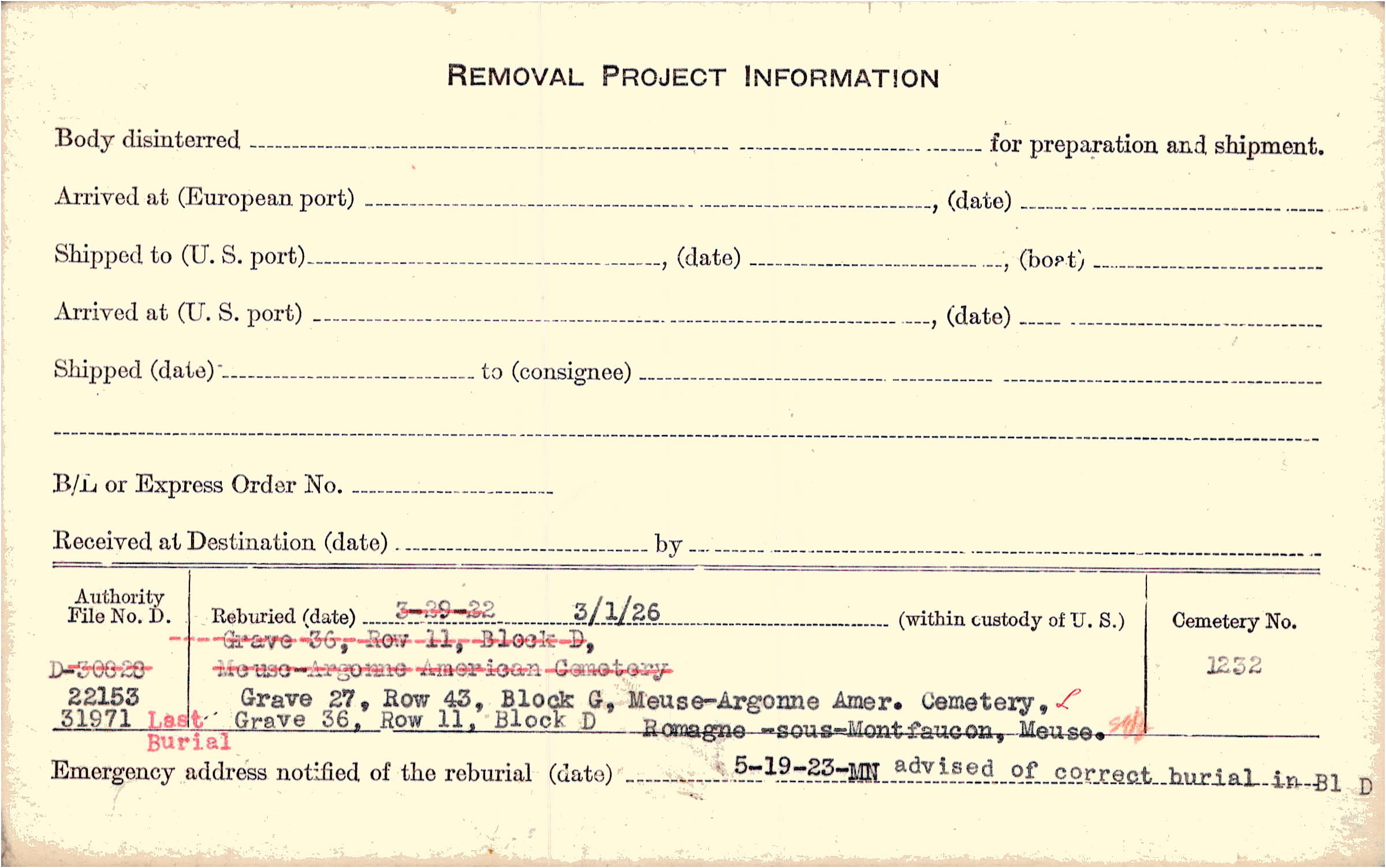 Prior Burial in Foreign Cemetery |