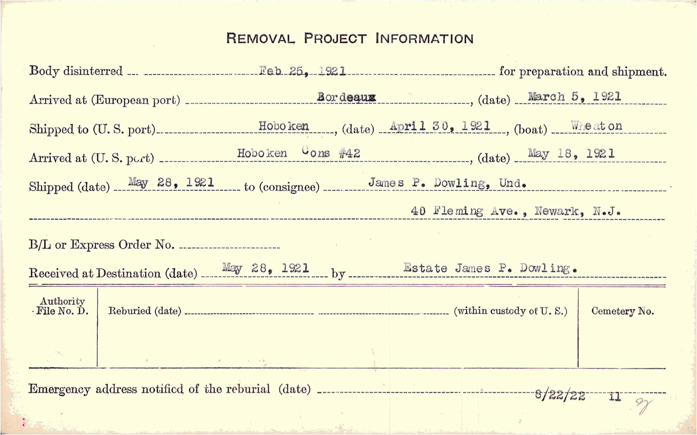 to James P. Dowling, Und., 40 Fleming Ave., Newark, N. J.