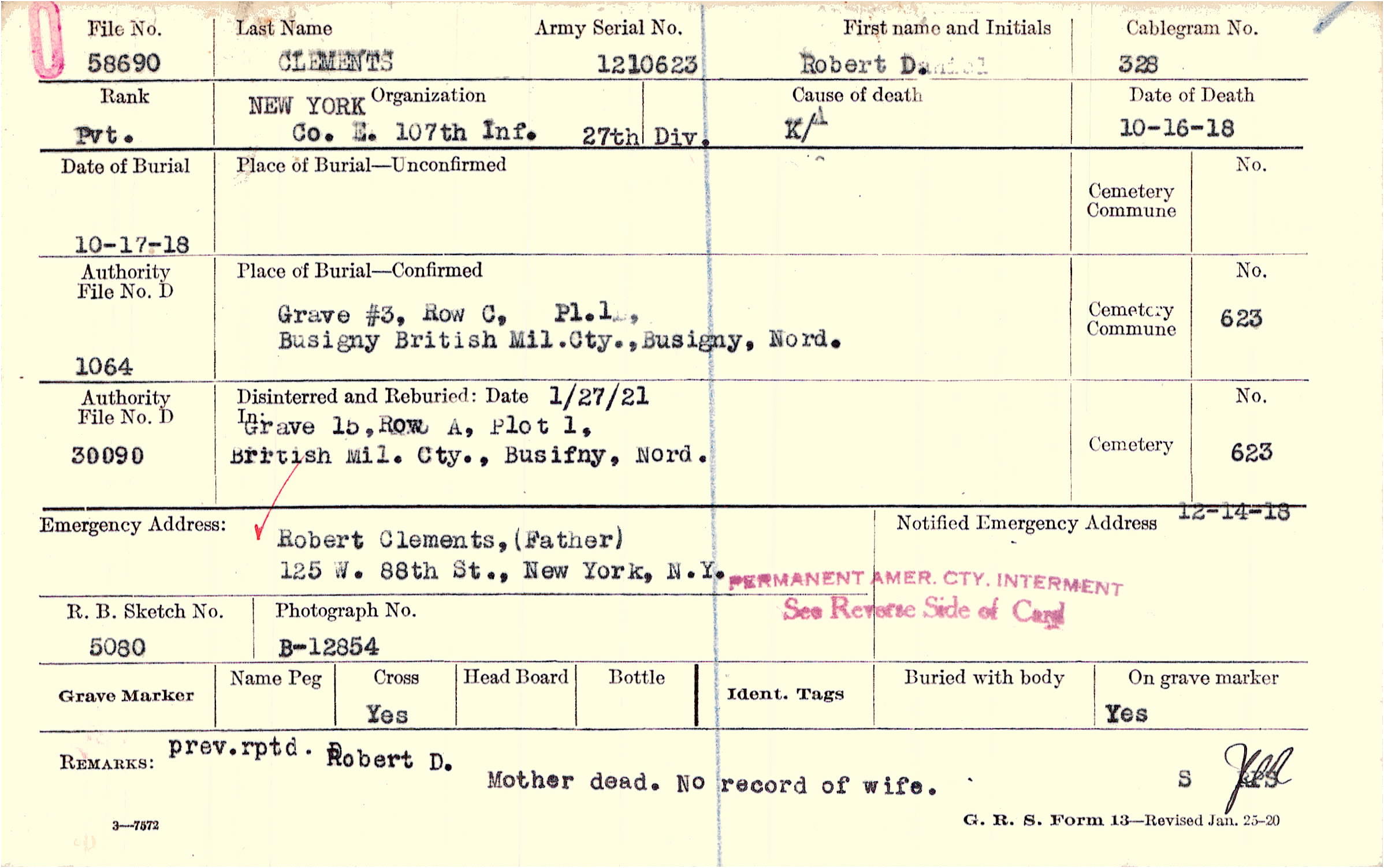 Robert Clements,(Father), 125 W. 88th St., New York, N.Y.