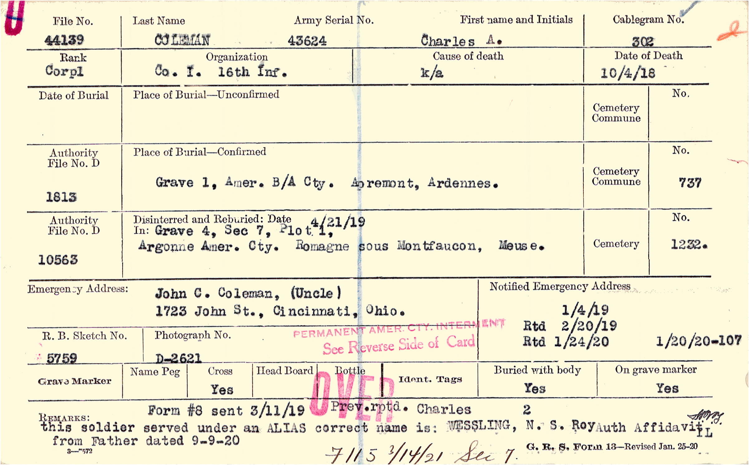 Grave 1, Amer. B/A Cty., Apremont, Ardennes
